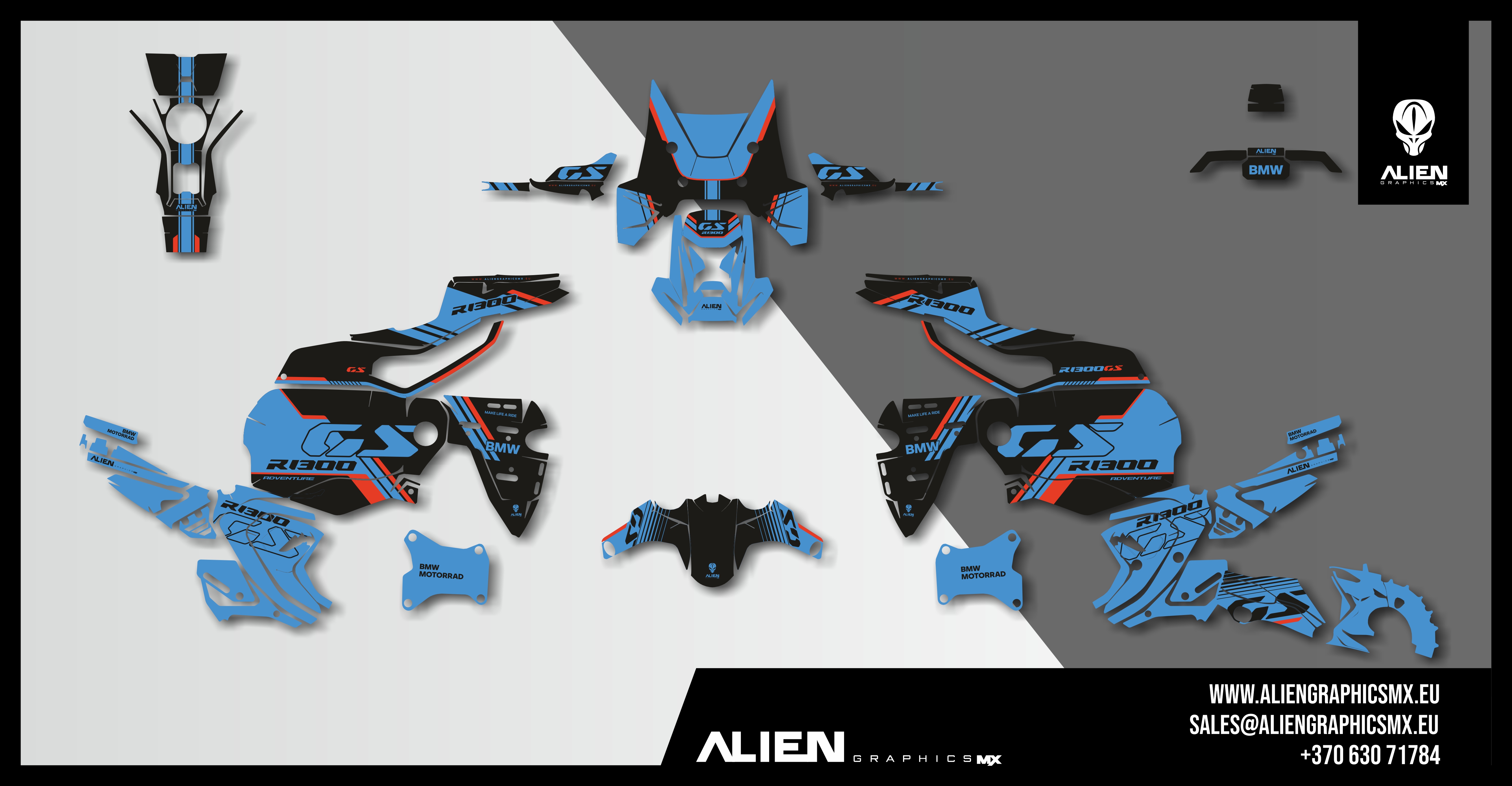 Premium motorcycle Graphic Kit (Decal Kit, Sticker Kit) for the BMW R 1300 GS ADVENTURE – manufactured from extremely durable, long-lasting materials and printed using professional-grade equipment for vivid, high-resolution colors.