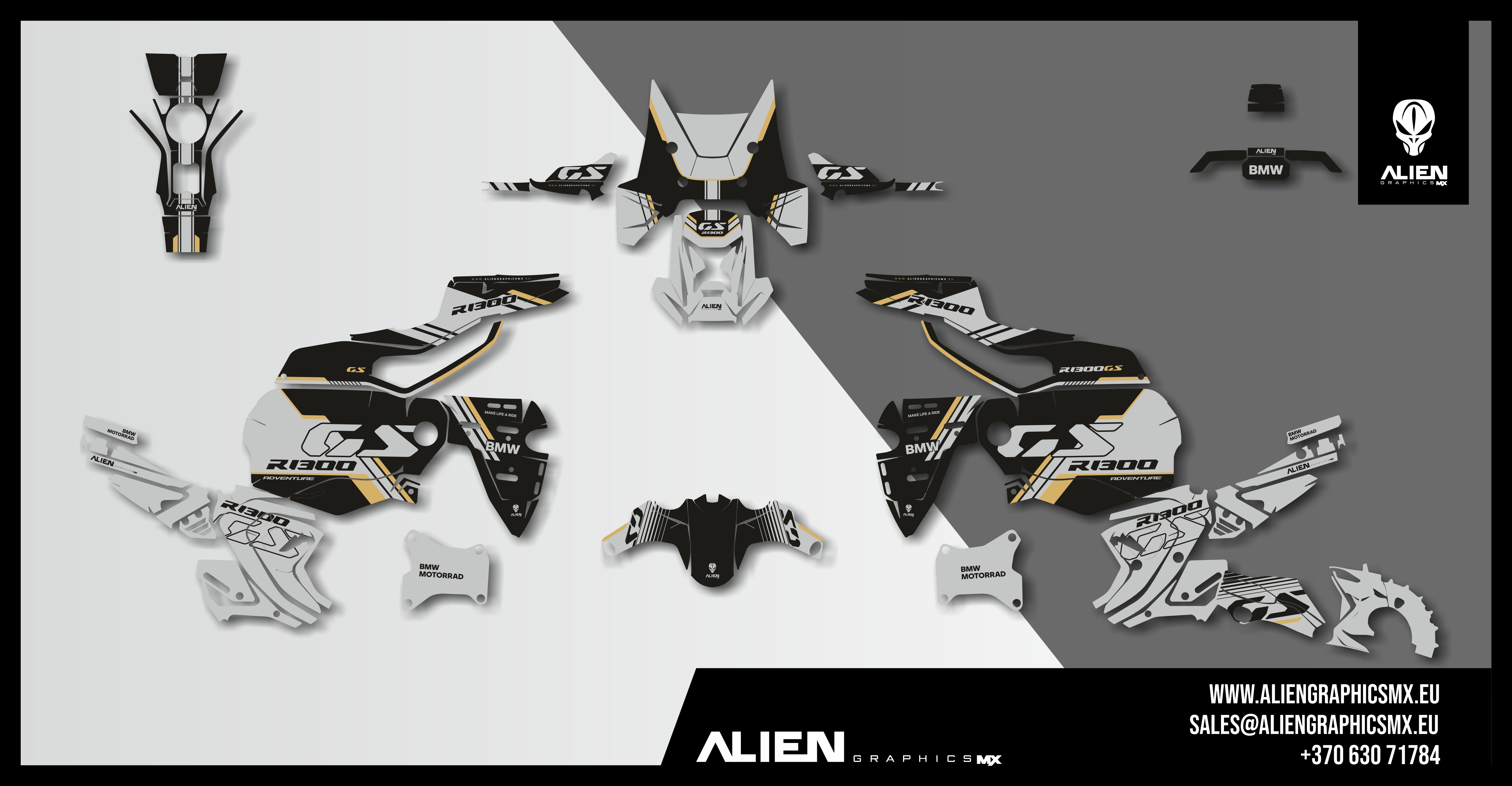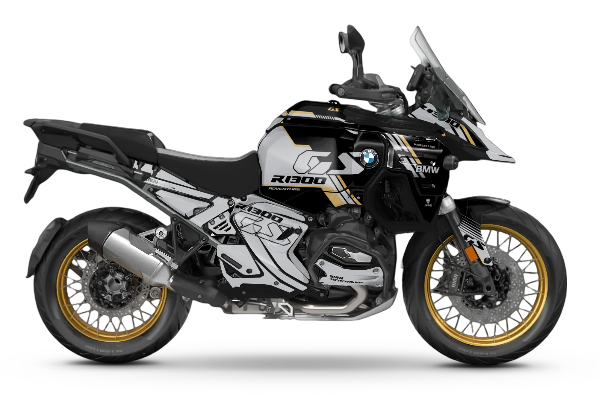 Premium motorcycle Graphic Kit (Decal Kit, Sticker Kit) for the BMW R 1300 GS ADVENTURE – manufactured from extremely durable, long-lasting materials and printed using professional-grade equipment for vivid, high-resolution colors.