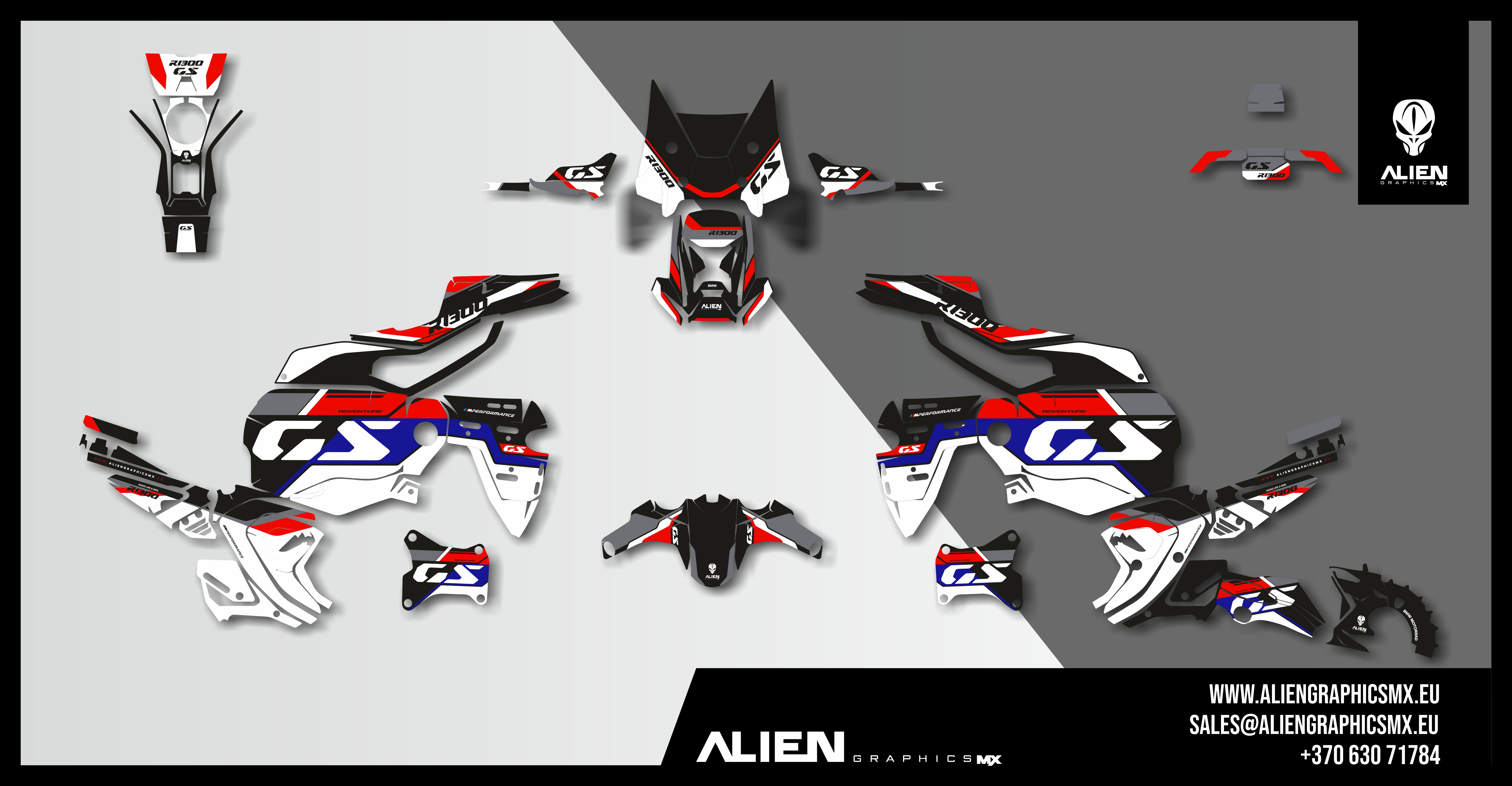 Premium motorcycle Graphic Kit (Decal Kit, Sticker Kit) for the BMW R 1300 GS ADVENTURE – manufactured from extremely durable, long-lasting materials and printed using professional-grade equipment for vivid, high-resolution colors.