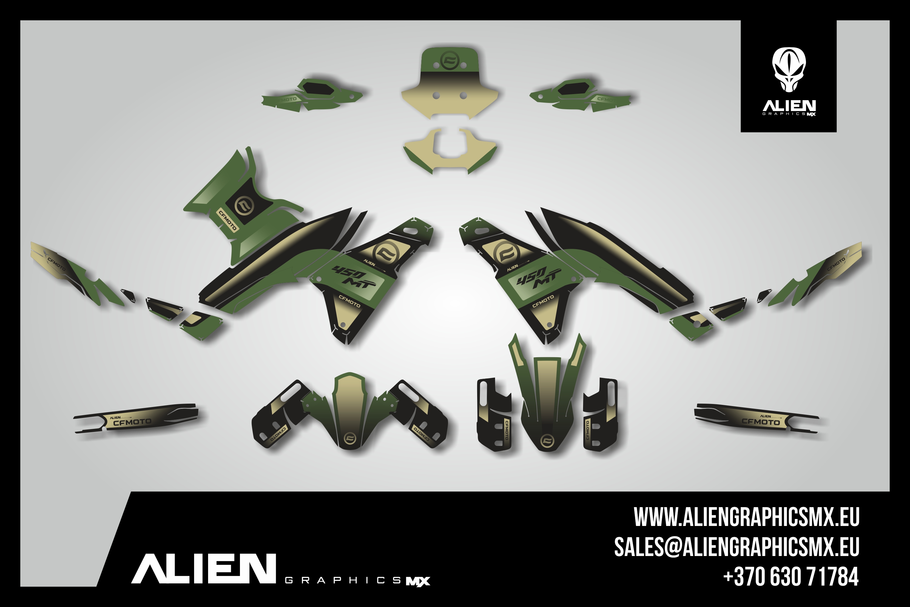 Premium motorcycle Graphic Kit (Decal Kit, Sticker Kit) for the CFMOTO 450MT – manufactured from extremely durable, long-lasting materials and printed using professional-grade equipment for vivid, high-resolution colors.