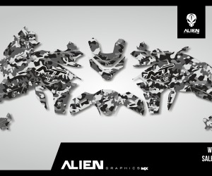We use profesional materials to produce our Graphic Kits for dirtbikes. It's well known self-adhesive materials manufacturer in USA and Italy. Our material supplyers develops and manufactures high performing print media and overlaminates for critical graphic applications. Thickness of stickers is 530 microns. Highly aggressive pressure sensitive acrylic adhesive system, specifically engineered to adhere to difficult substrates, including motocross bikes