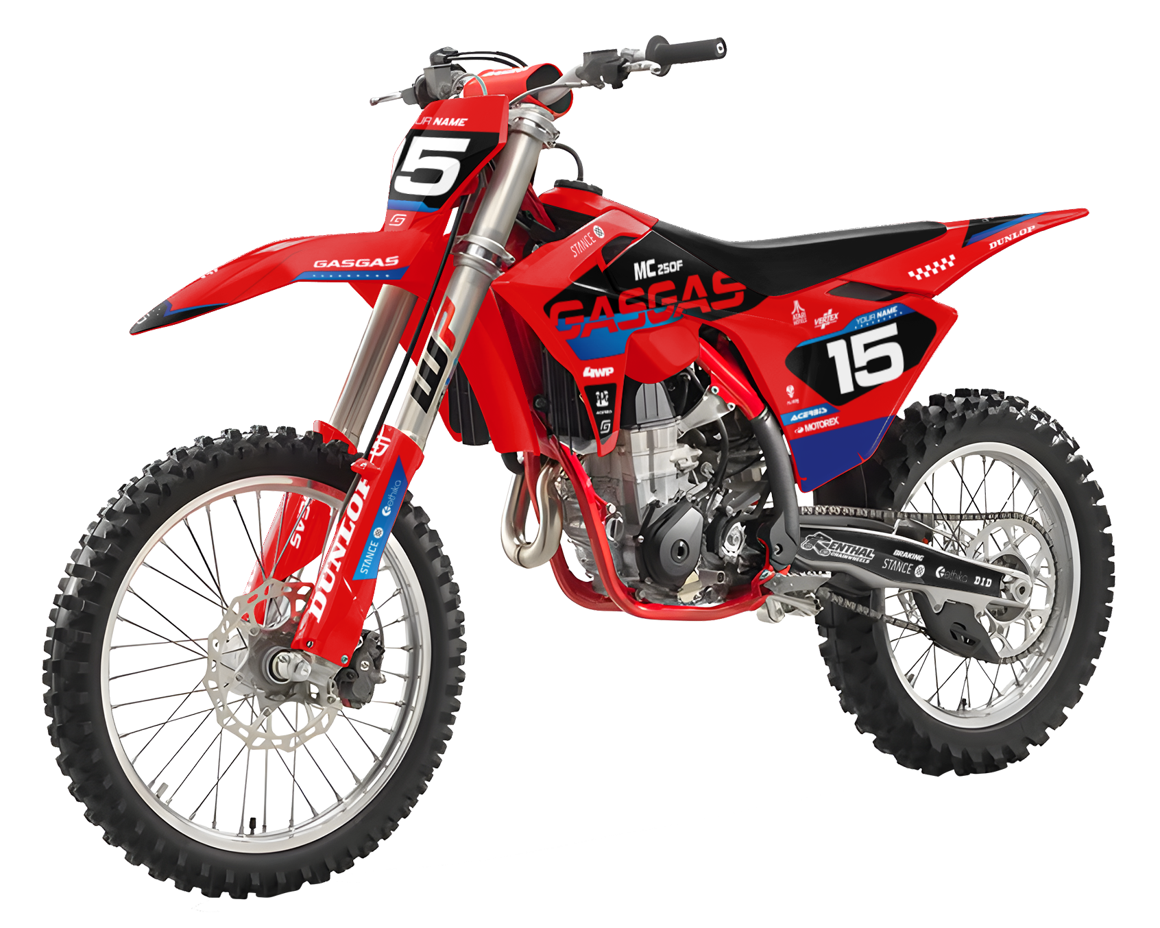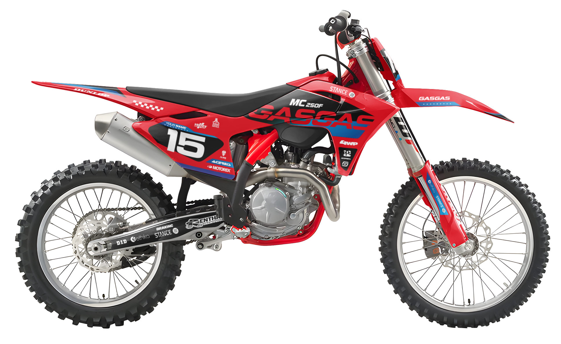 Premium motorcycle Graphic Kit (Decal Kit, Sticker Kit) for the GASGAS Dirt Bikes – manufactured from extremely durable, long-lasting materials and printed using professional-grade equipment for vivid, high-resolution colors.