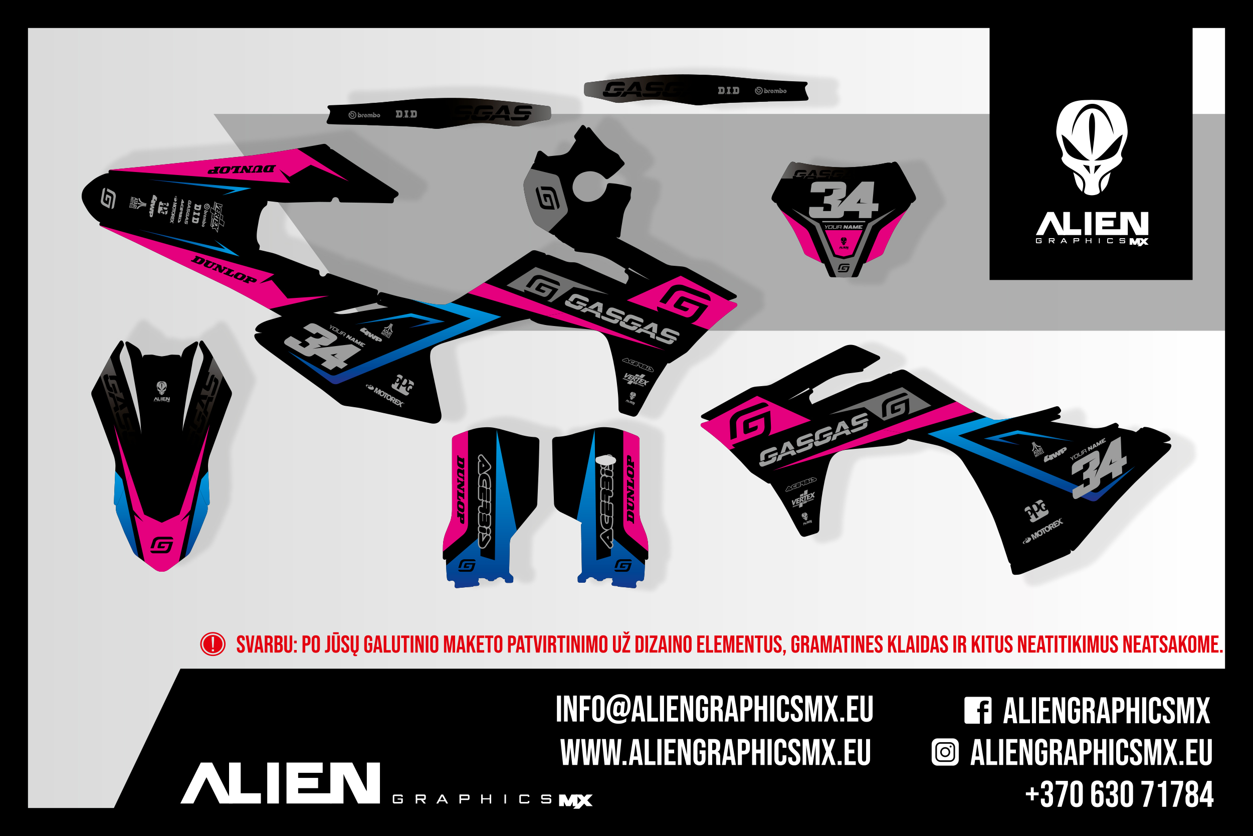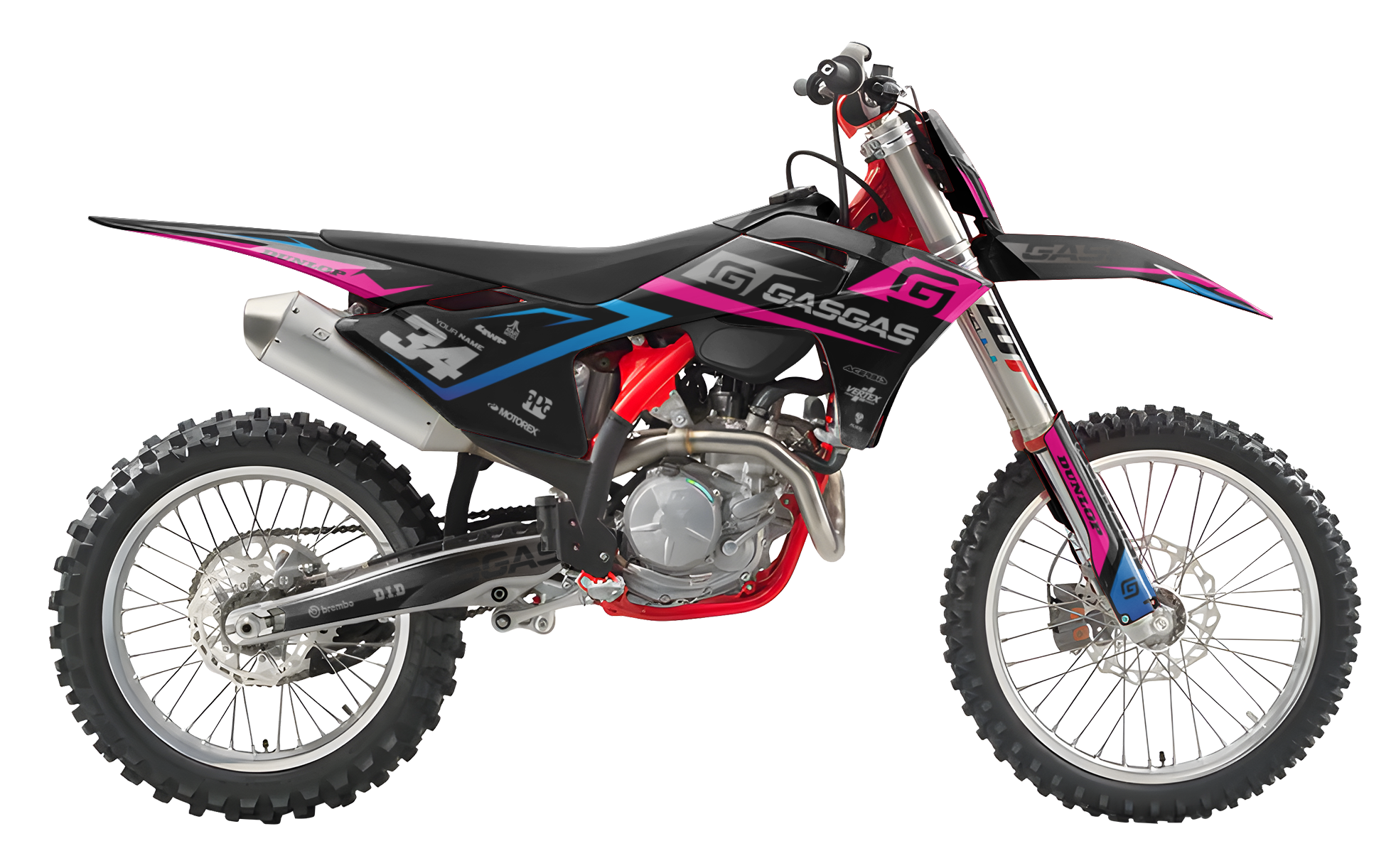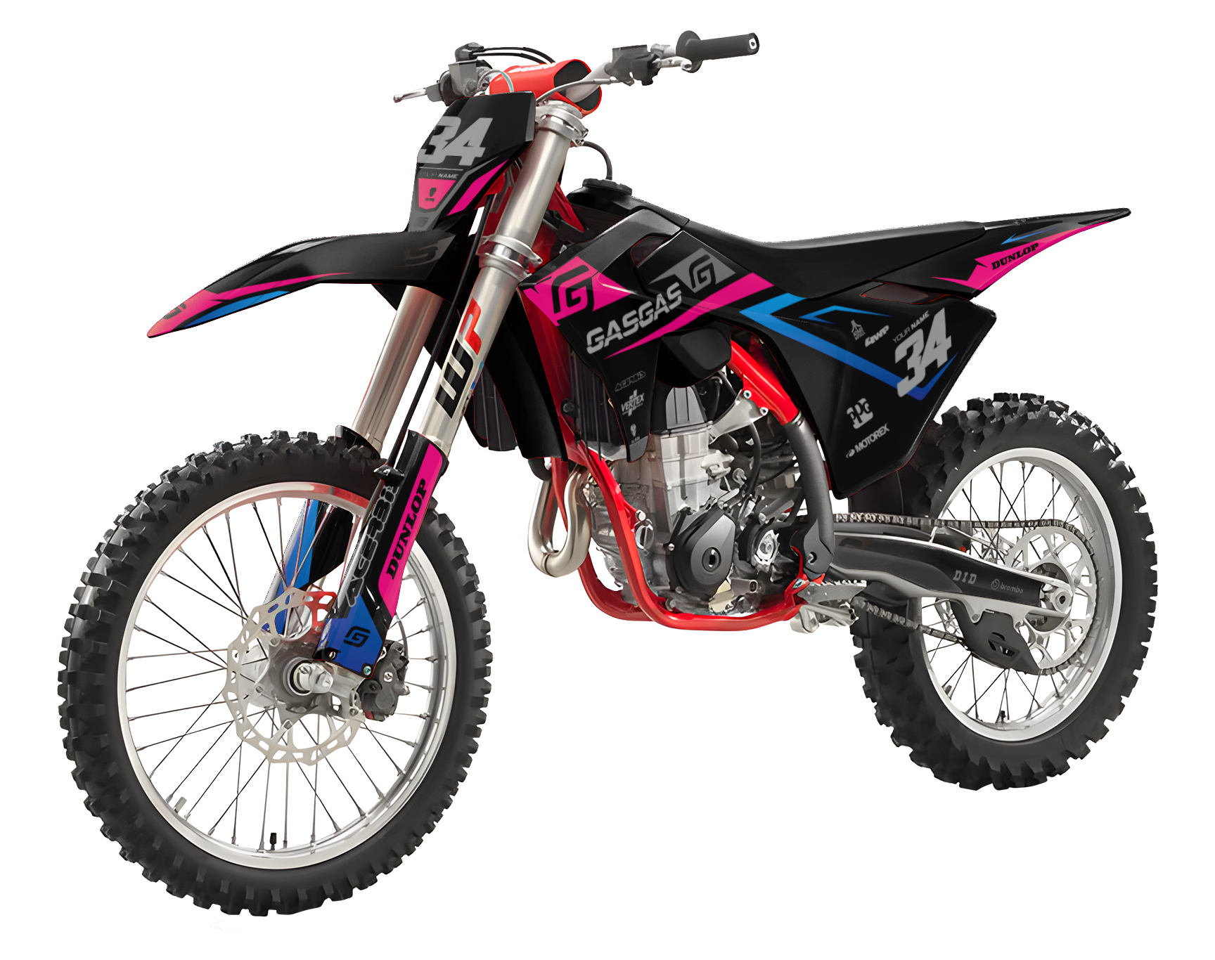 Premium motorcycle Graphic Kit (Decal Kit, Sticker Kit) for the GASGAS Dirt Bikes – manufactured from extremely durable, long-lasting materials and printed using professional-grade equipment for vivid, high-resolution colors.