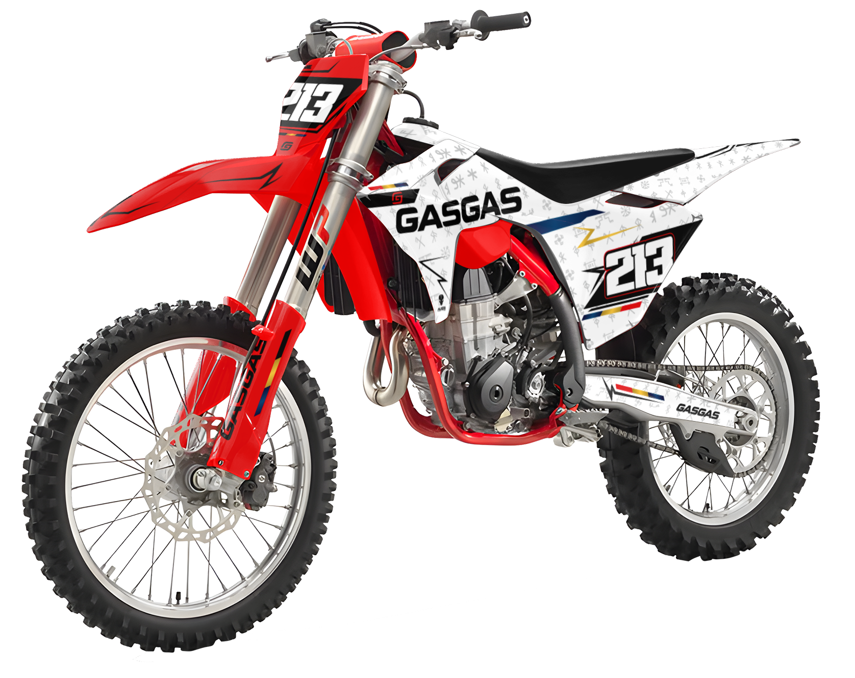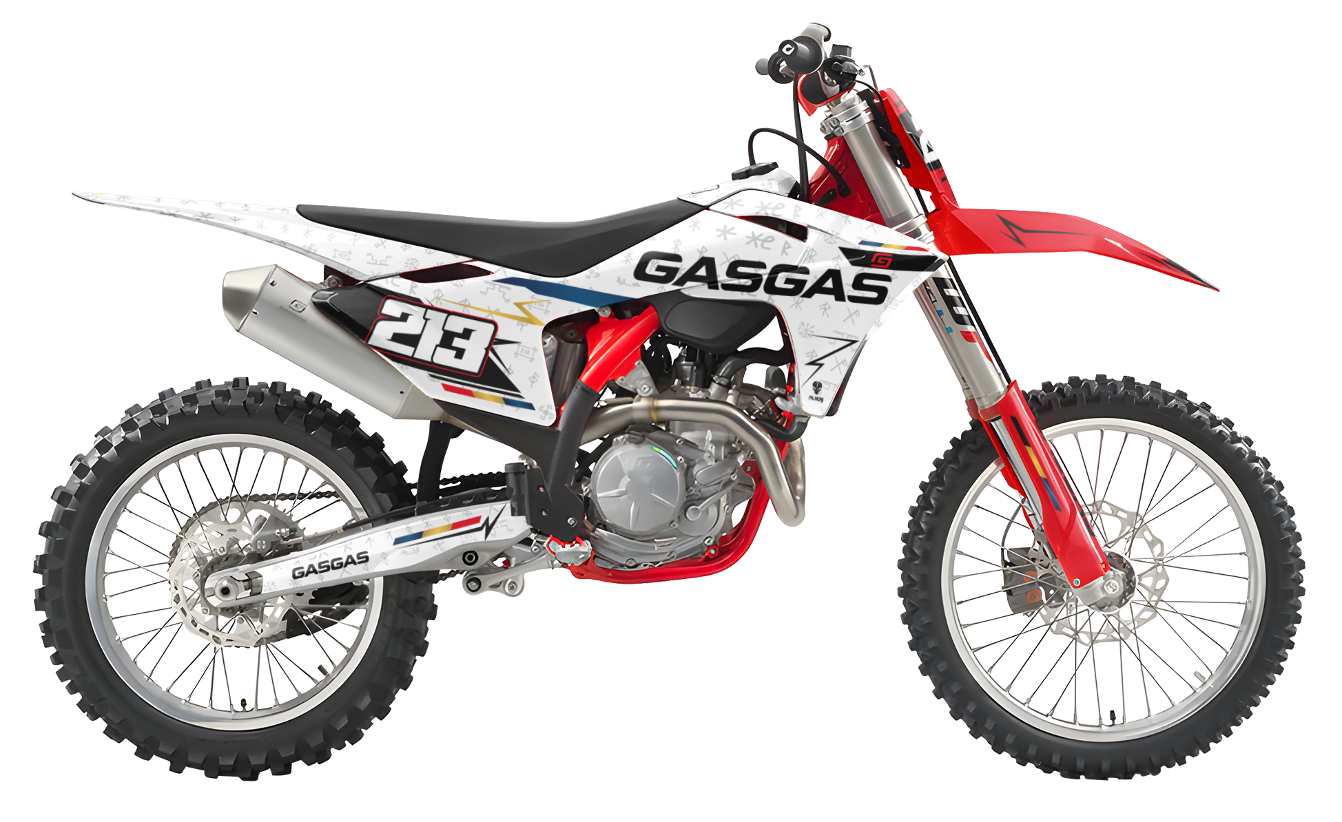Premium motorcycle Graphic Kit (Decal Kit, Sticker Kit) for the GASGAS Dirt Bikes – manufactured from extremely durable, long-lasting materials and printed using professional-grade equipment for vivid, high-resolution colors.