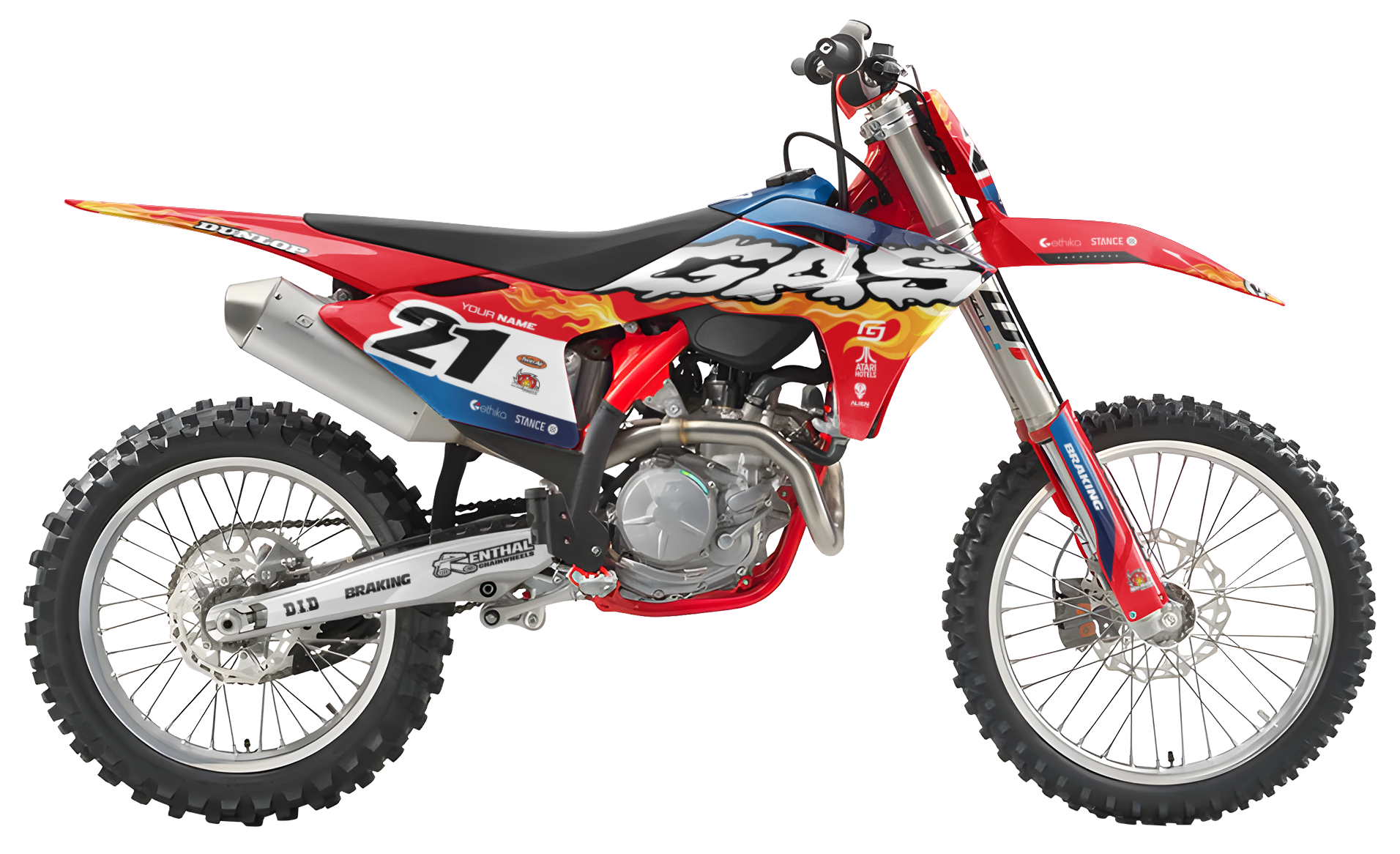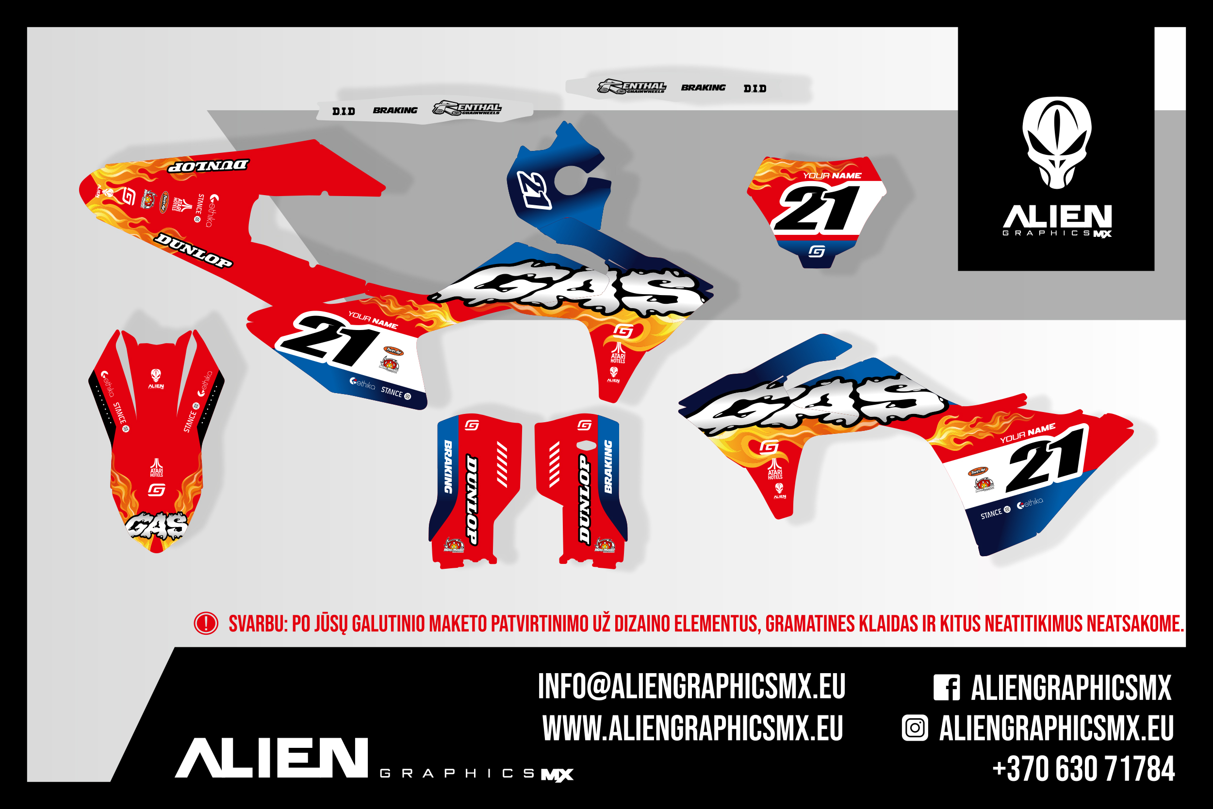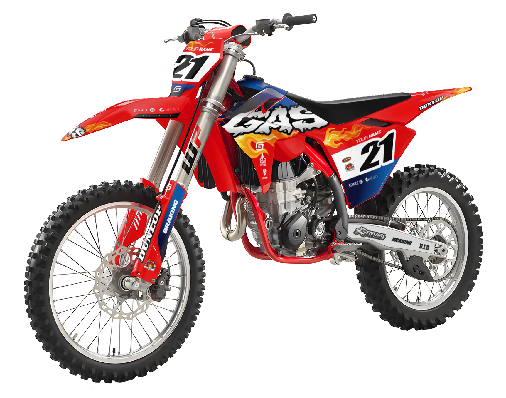 Premium motorcycle Graphic Kit (Decal Kit, Sticker Kit) for the GASGAS Dirt Bikes – manufactured from extremely durable, long-lasting materials and printed using professional-grade equipment for vivid, high-resolution colors.