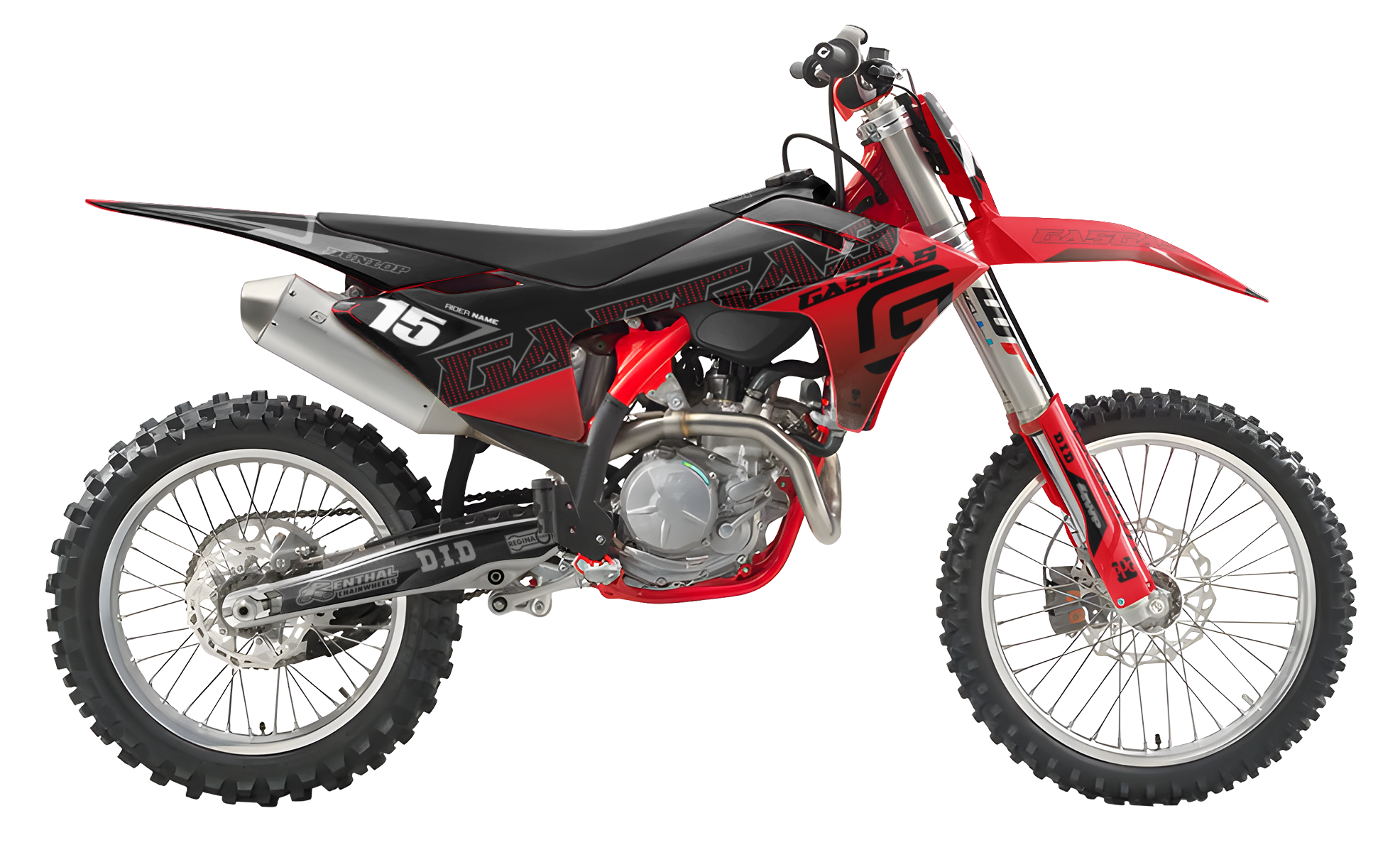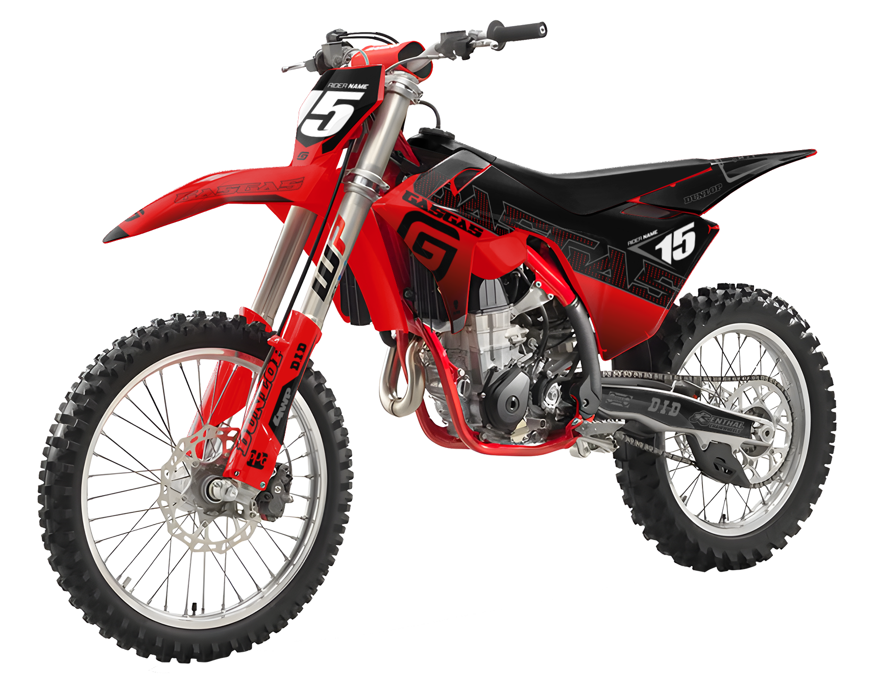 Premium motorcycle Graphic Kit (Decal Kit, Sticker Kit) for the GASGAS Dirt Bikes – manufactured from extremely durable, long-lasting materials and printed using professional-grade equipment for vivid, high-resolution colors.