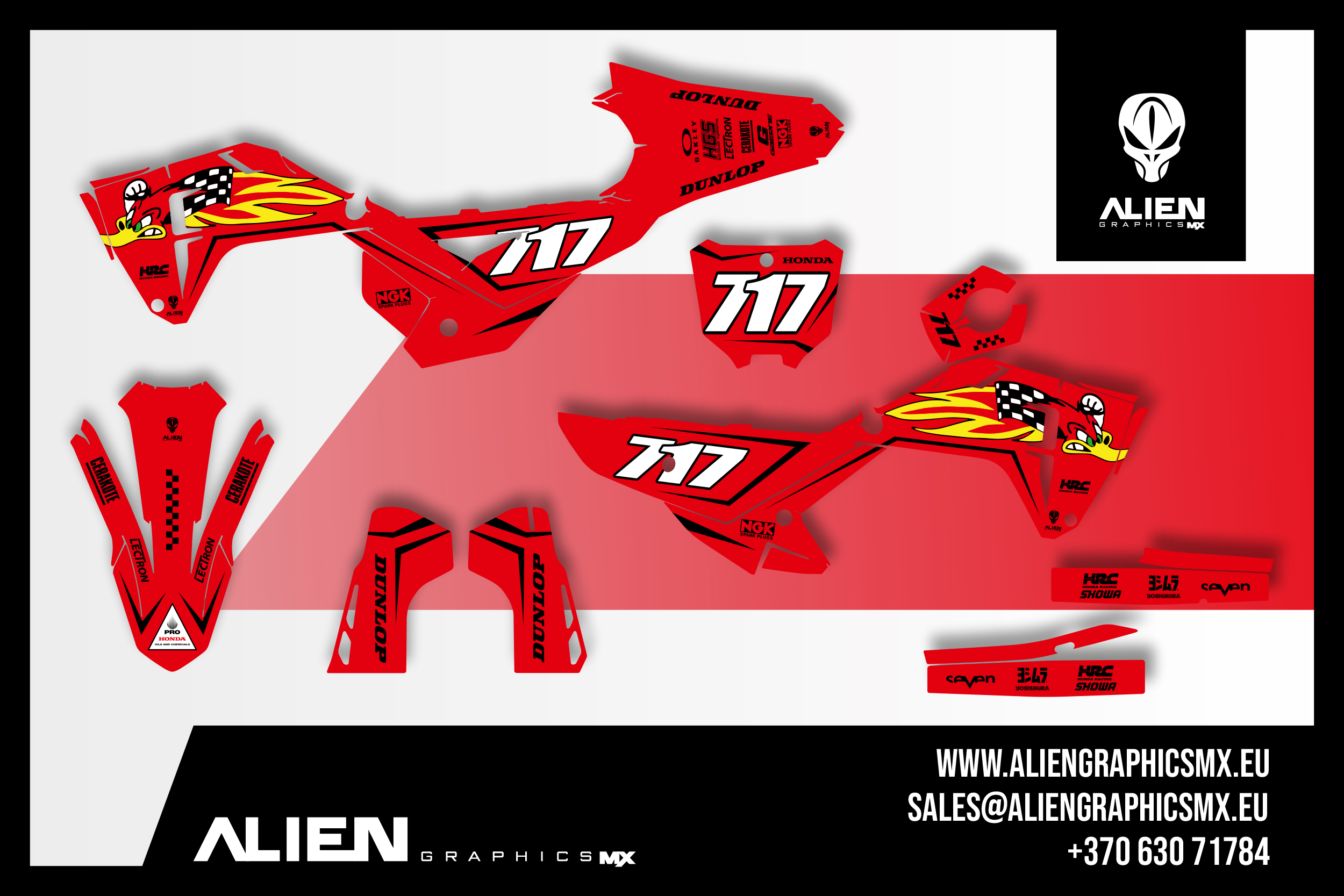 Premium motorcycle Graphic Kit (Decal Kit, Sticker Kit) for the HONDA Dirt Bikes – manufactured from extremely durable, long-lasting materials and printed using professional-grade equipment for vivid, high-resolution colors.