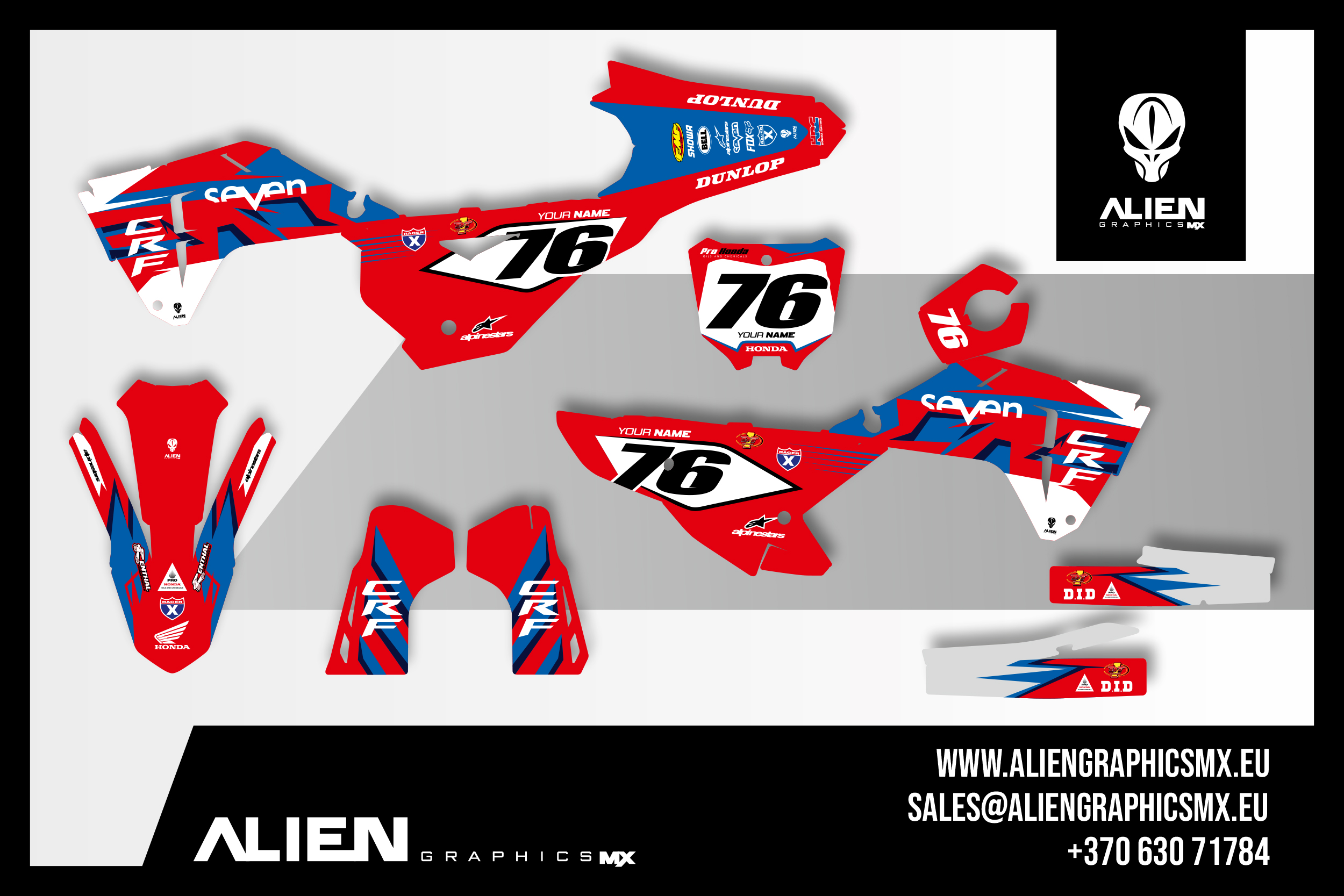 Premium motorcycle Graphic Kit (Decal Kit, Sticker Kit) for the HONDA Dirt Bikes – manufactured from extremely durable, long-lasting materials and printed using professional-grade equipment for vivid, high-resolution colors.