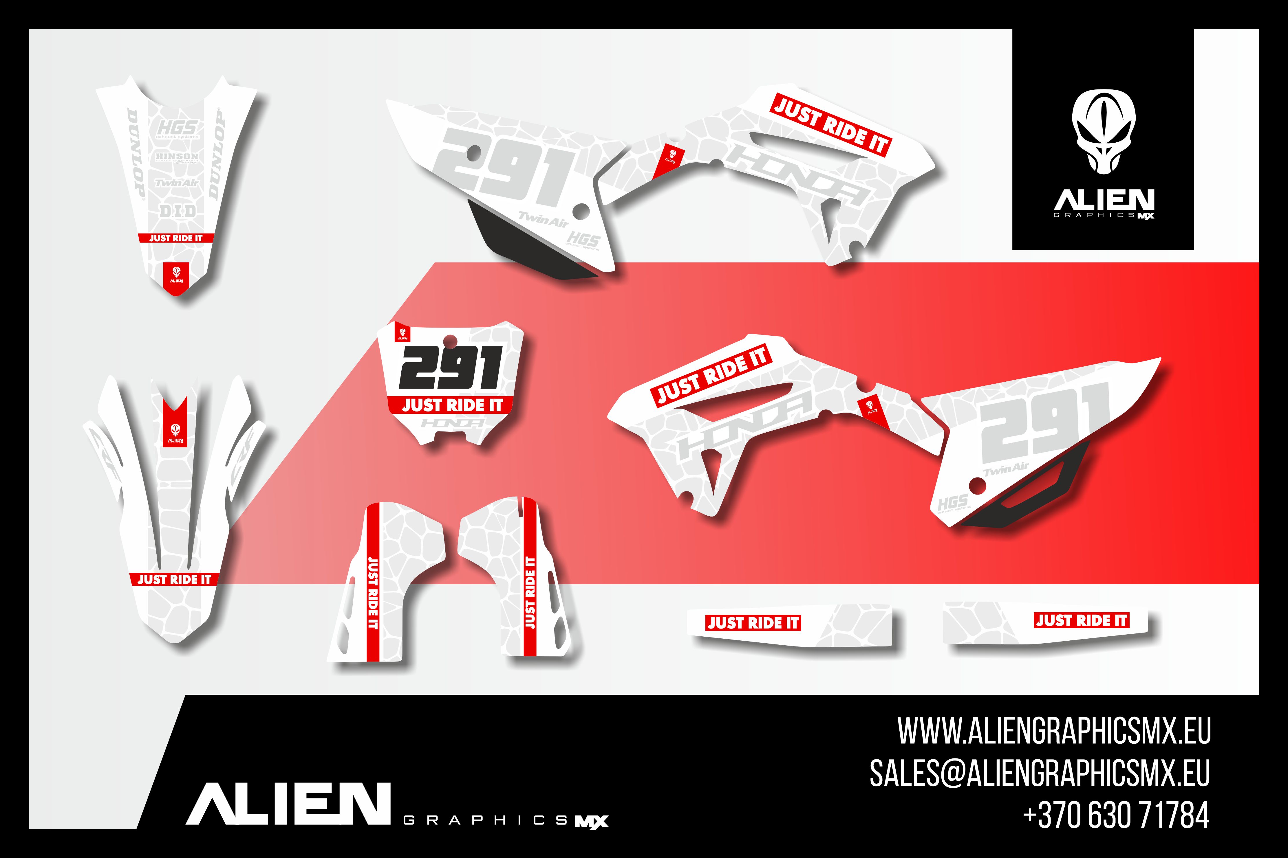 Premium motorcycle Graphic Kit (Decal Kit, Sticker Kit) for the HONDA Dirt Bikes – manufactured from extremely durable, long-lasting materials and printed using professional-grade equipment for vivid, high-resolution colors.