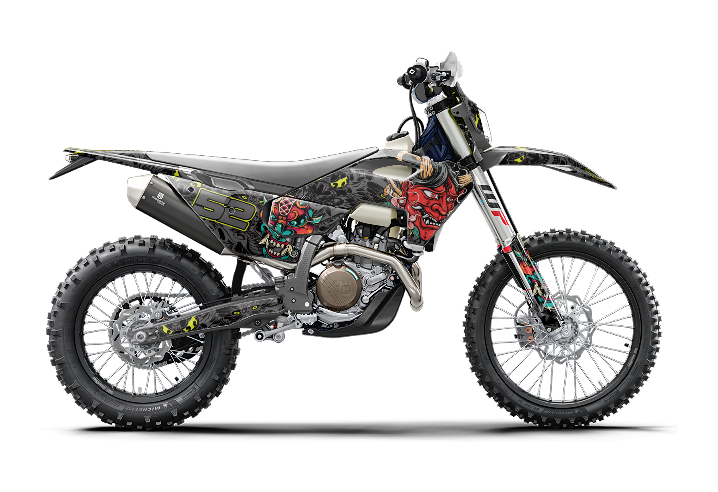 Premium motorcycle Graphic Kit (Decal Kit, Sticker Kit) for the HUSQVARNA Dirt Bikes – manufactured from extremely durable, long-lasting materials and printed using professional-grade equipment for vivid, high-resolution colors.