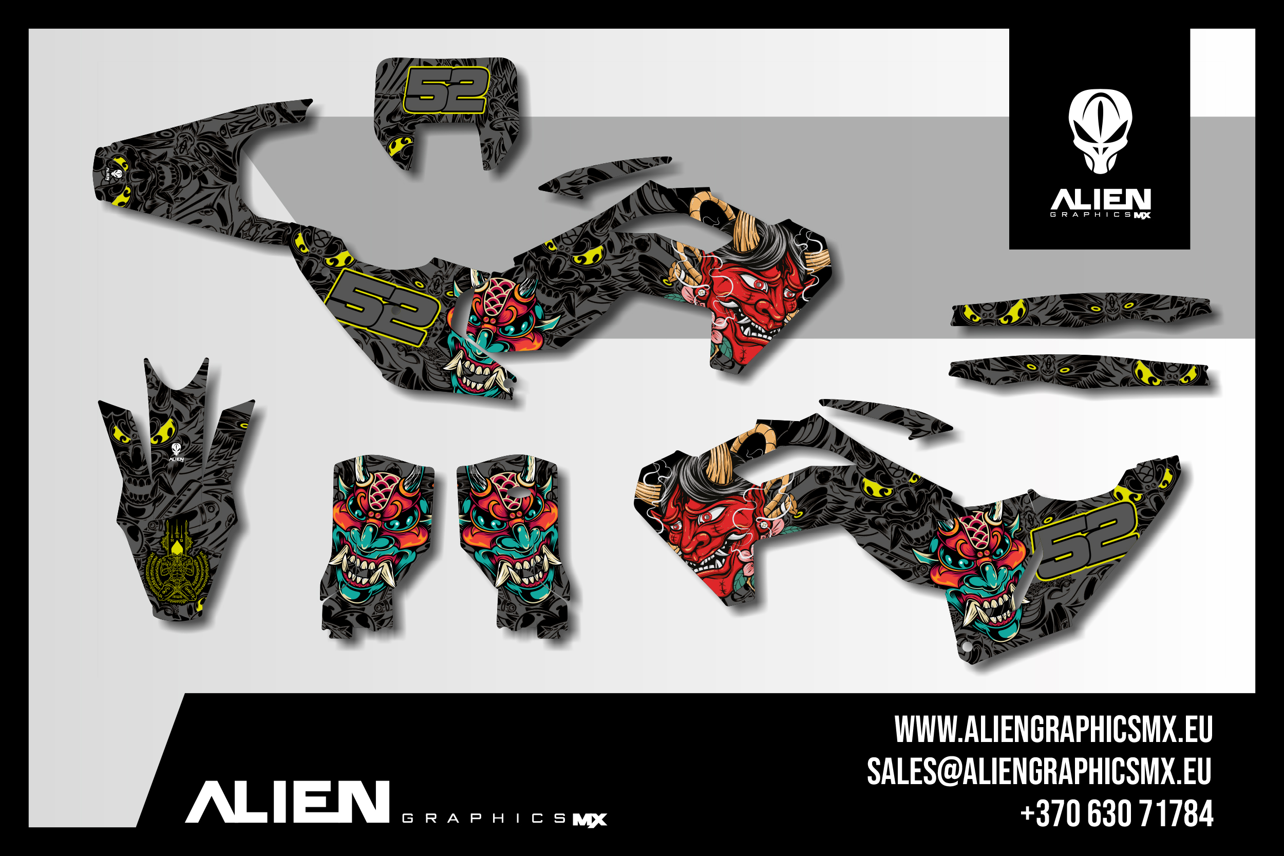 Before we start producing the stickers, you will receive a layout preview showing all the parts that will be made specifically for your model.