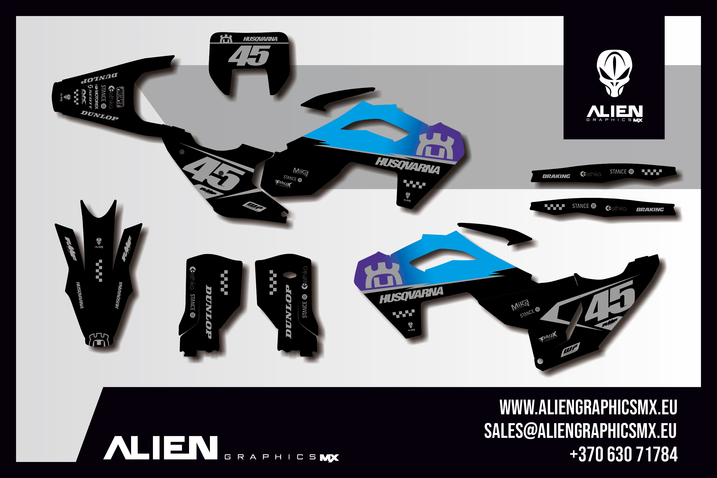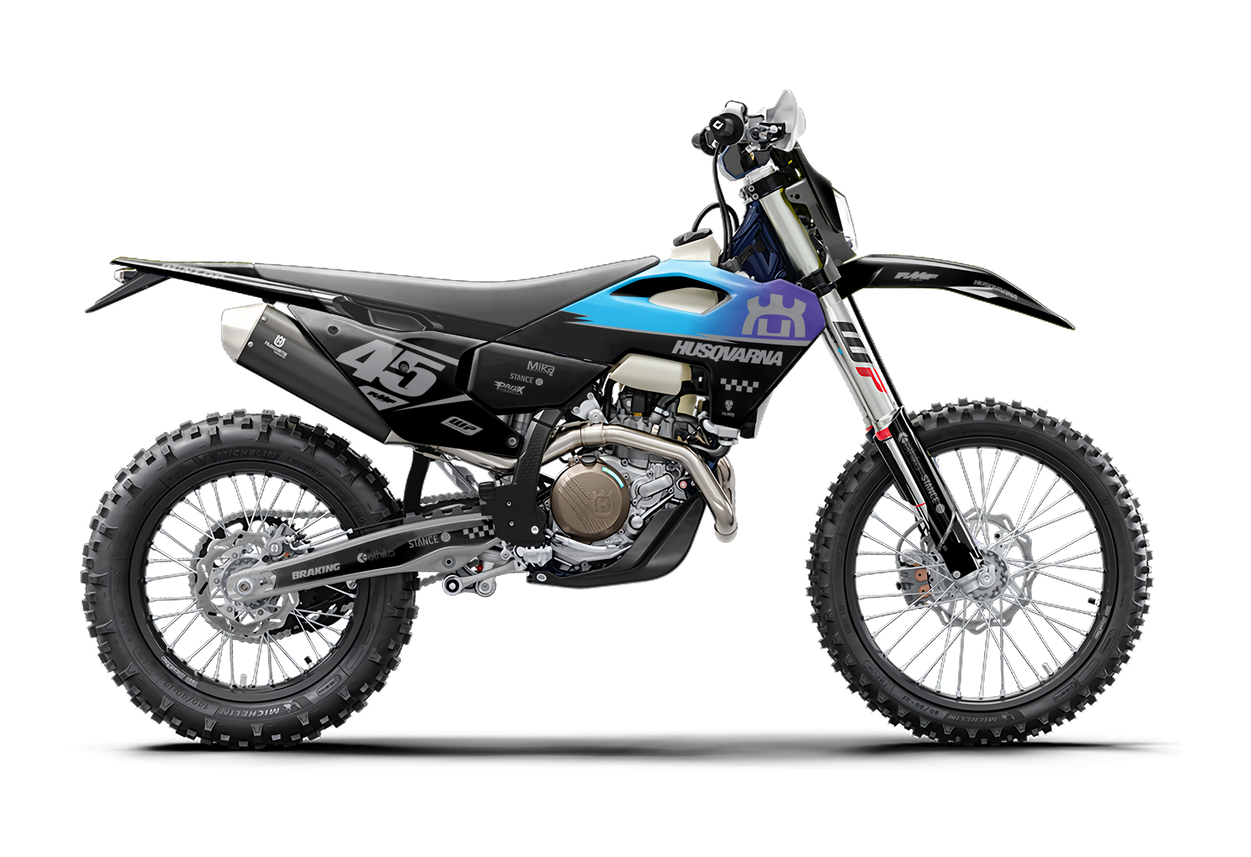 Premium motorcycle Graphic Kit (Decal Kit, Sticker Kit) for the HUSQVARNA Dirt Bikes – manufactured from extremely durable, long-lasting materials and printed using professional-grade equipment for vivid, high-resolution colors.