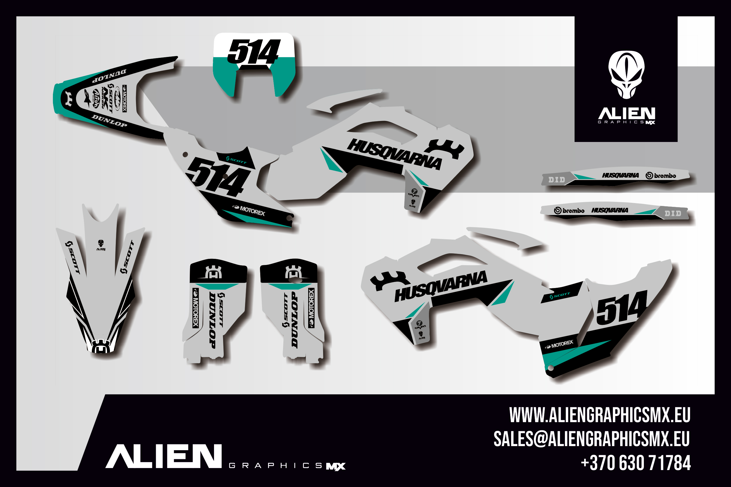 Premium motorcycle Graphic Kit (Decal Kit, Sticker Kit) for the HUSQVARNA Dirt Bikes – manufactured from extremely durable, long-lasting materials and printed using professional-grade equipment for vivid, high-resolution colors.