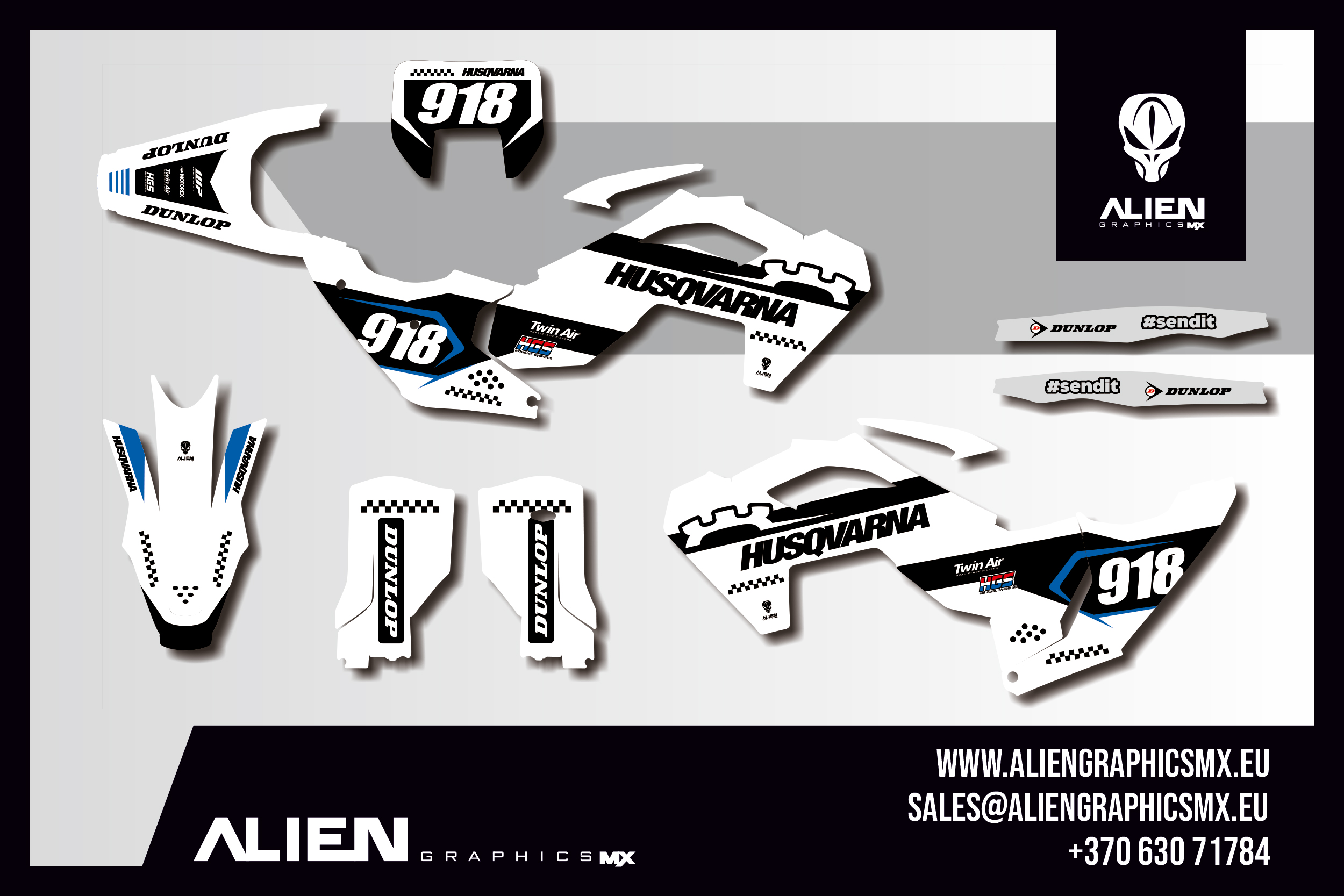 Premium motorcycle Graphic Kit (Decal Kit, Sticker Kit) for the HUSQVARNA Dirt Bikes – manufactured from extremely durable, long-lasting materials and printed using professional-grade equipment for vivid, high-resolution colors.