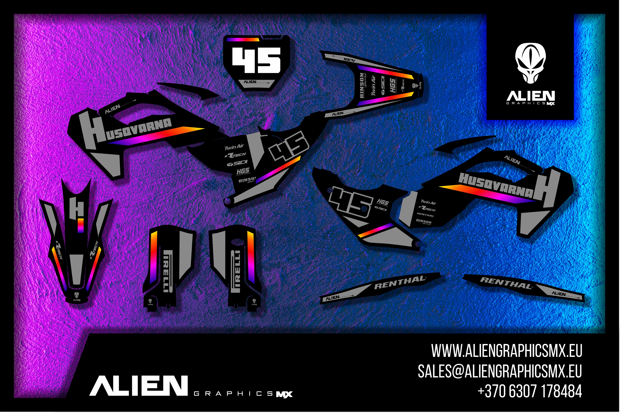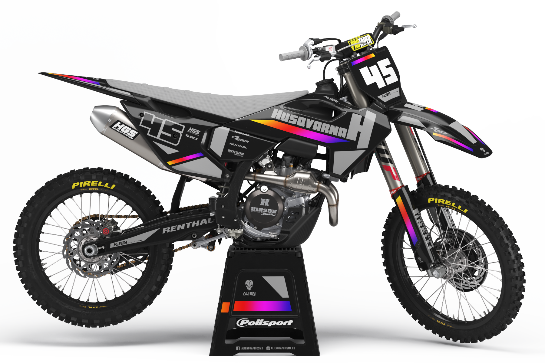 Premium motorcycle Graphic Kit (Decal Kit, Sticker Kit) for the HUSQVARNA Dirt Bikes – manufactured from extremely durable, long-lasting materials and printed using professional-grade equipment for vivid, high-resolution colors.