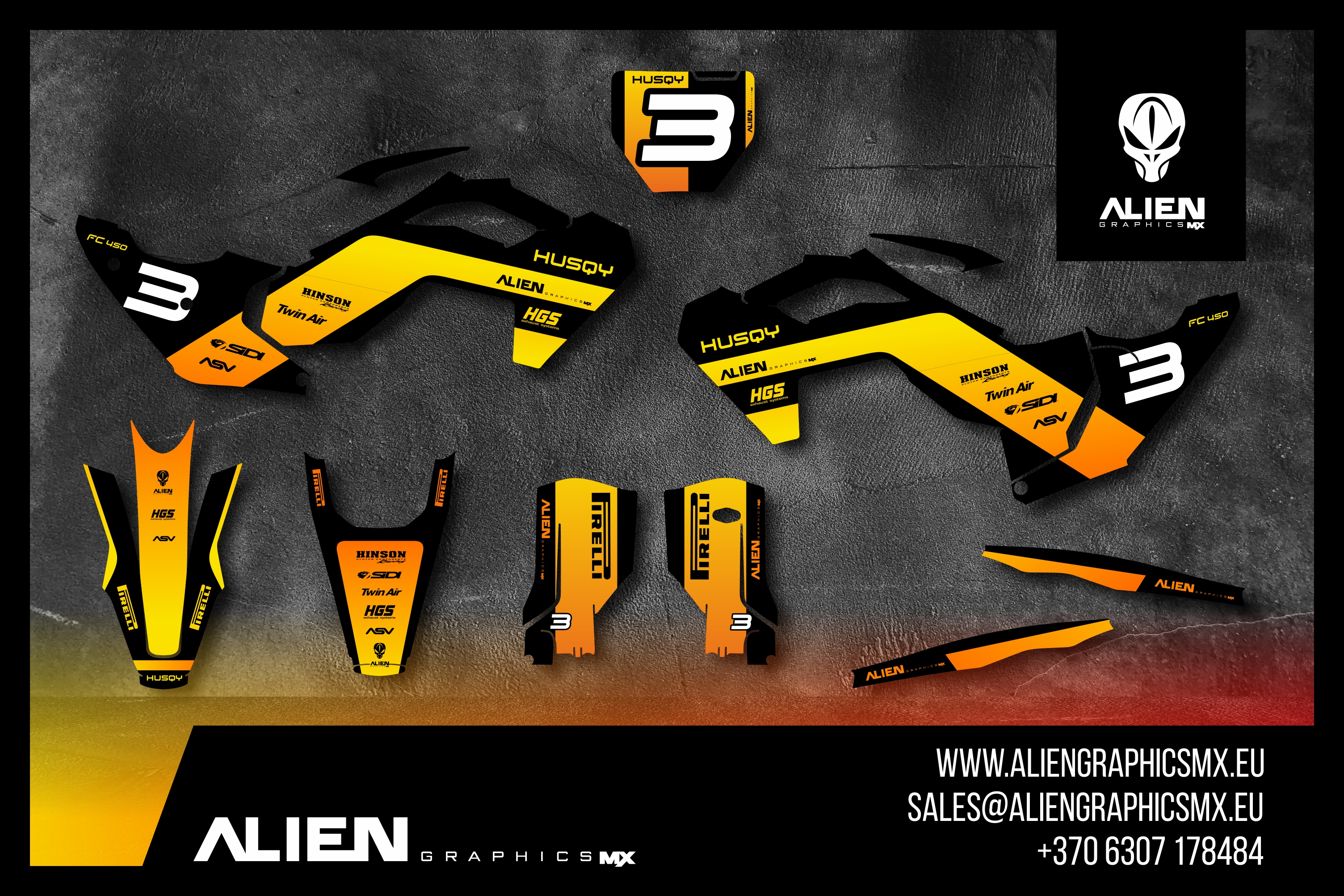 Premium motorcycle Graphic Kit (Decal Kit, Sticker Kit) for the HUSQVARNA Dirt Bikes – manufactured from extremely durable, long-lasting materials and printed using professional-grade equipment for vivid, high-resolution colors.