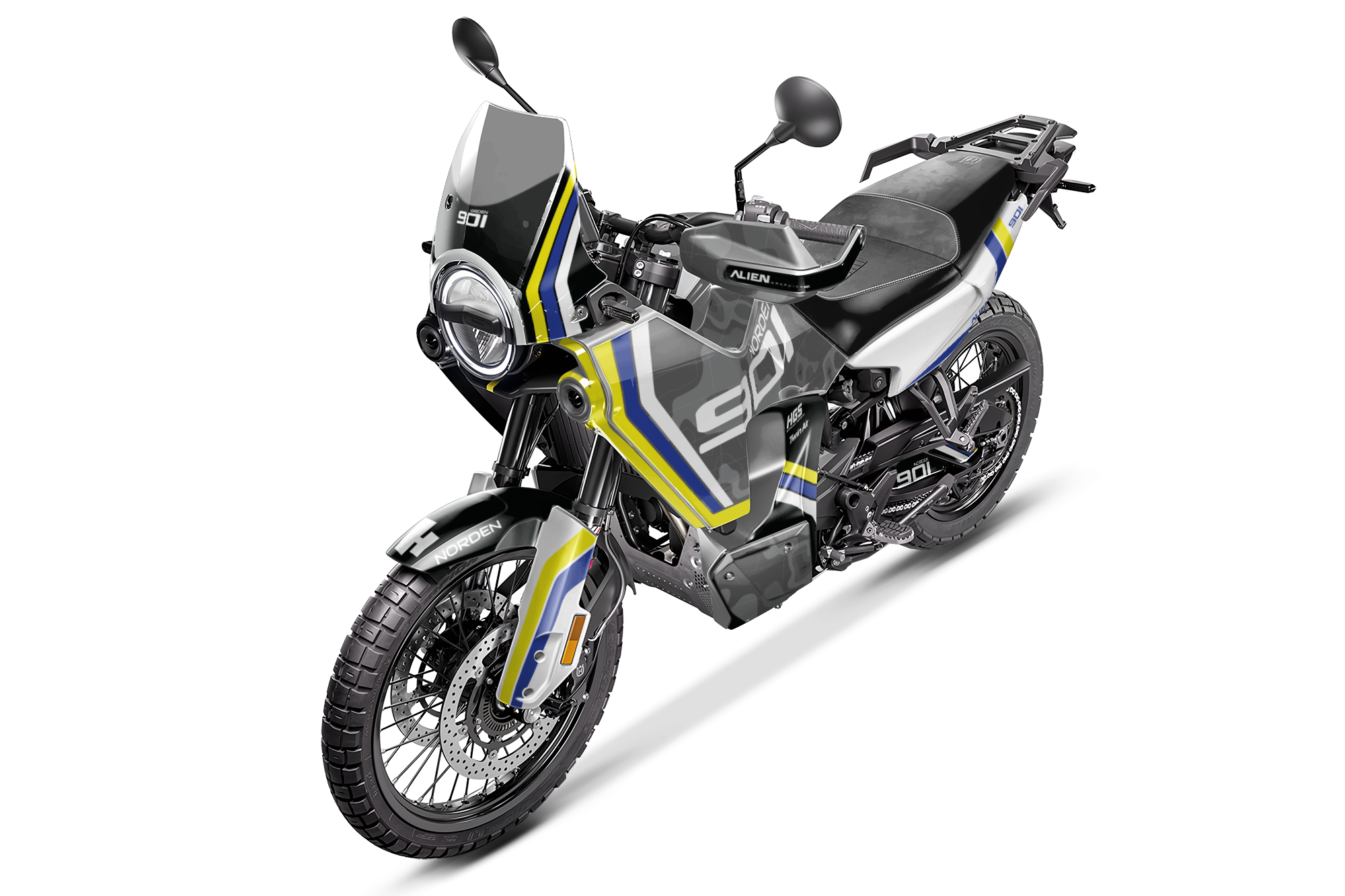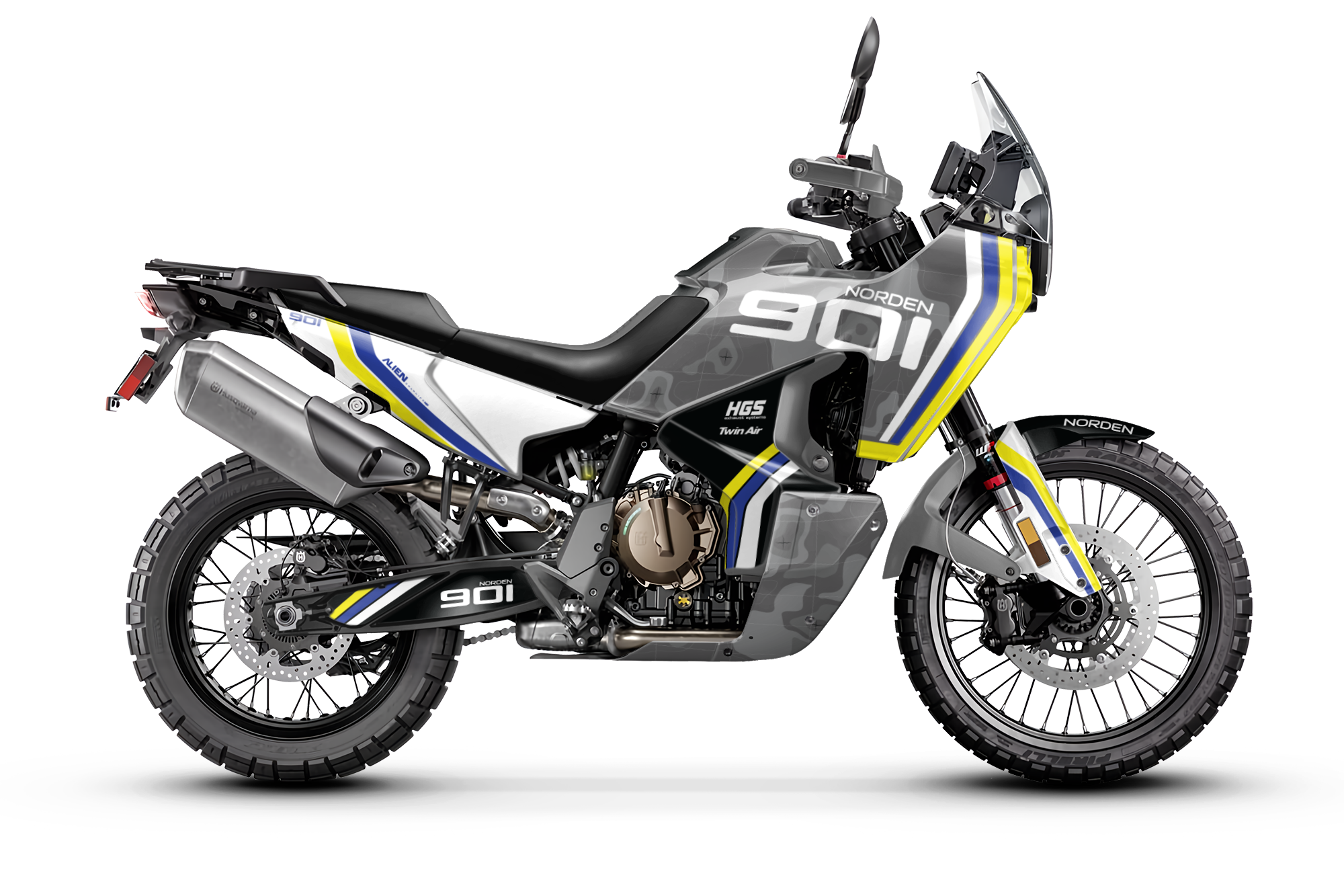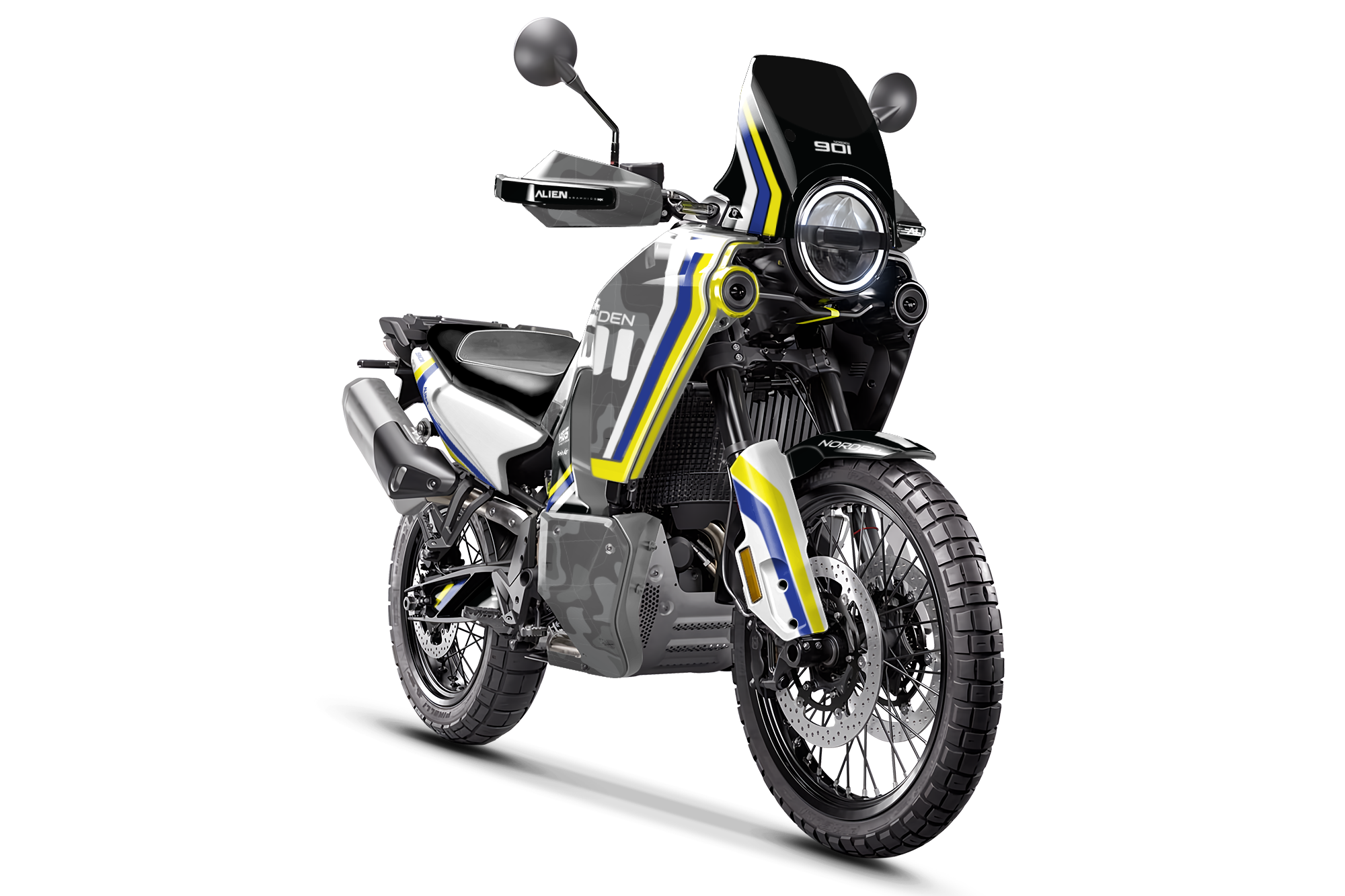 Premium motorcycle Graphic Kit (Decal Kit, Sticker Kit) for the HUSQVARNA NORDEN 901 – manufactured from extremely durable, long-lasting materials and printed using professional-grade equipment for vivid, high-resolution colors.