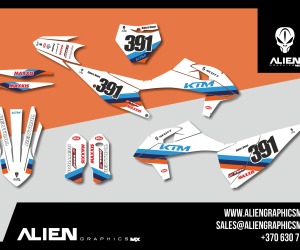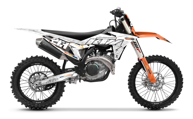 Premium motorcycle Graphic Kit (Decal Kit, Sticker Kit) for the KTM Dirt Bikes – manufactured from extremely durable, long-lasting materials and printed using professional-grade equipment for vivid, high-resolution colors.