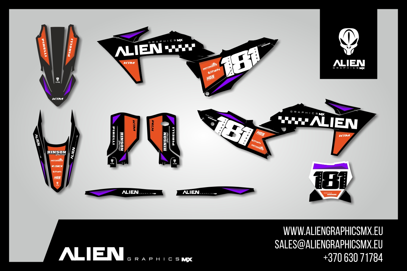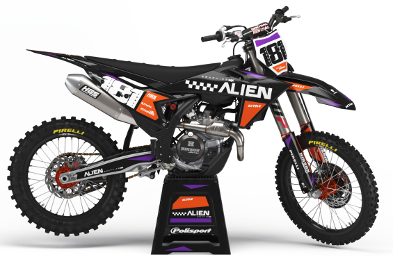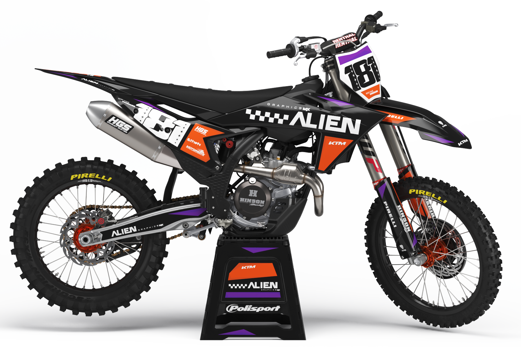 Premium motorcycle Graphic Kit (Decal Kit, Sticker Kit) for the KTM Dirt Bikes – manufactured from extremely durable, long-lasting materials and printed using professional-grade equipment for vivid, high-resolution colors.