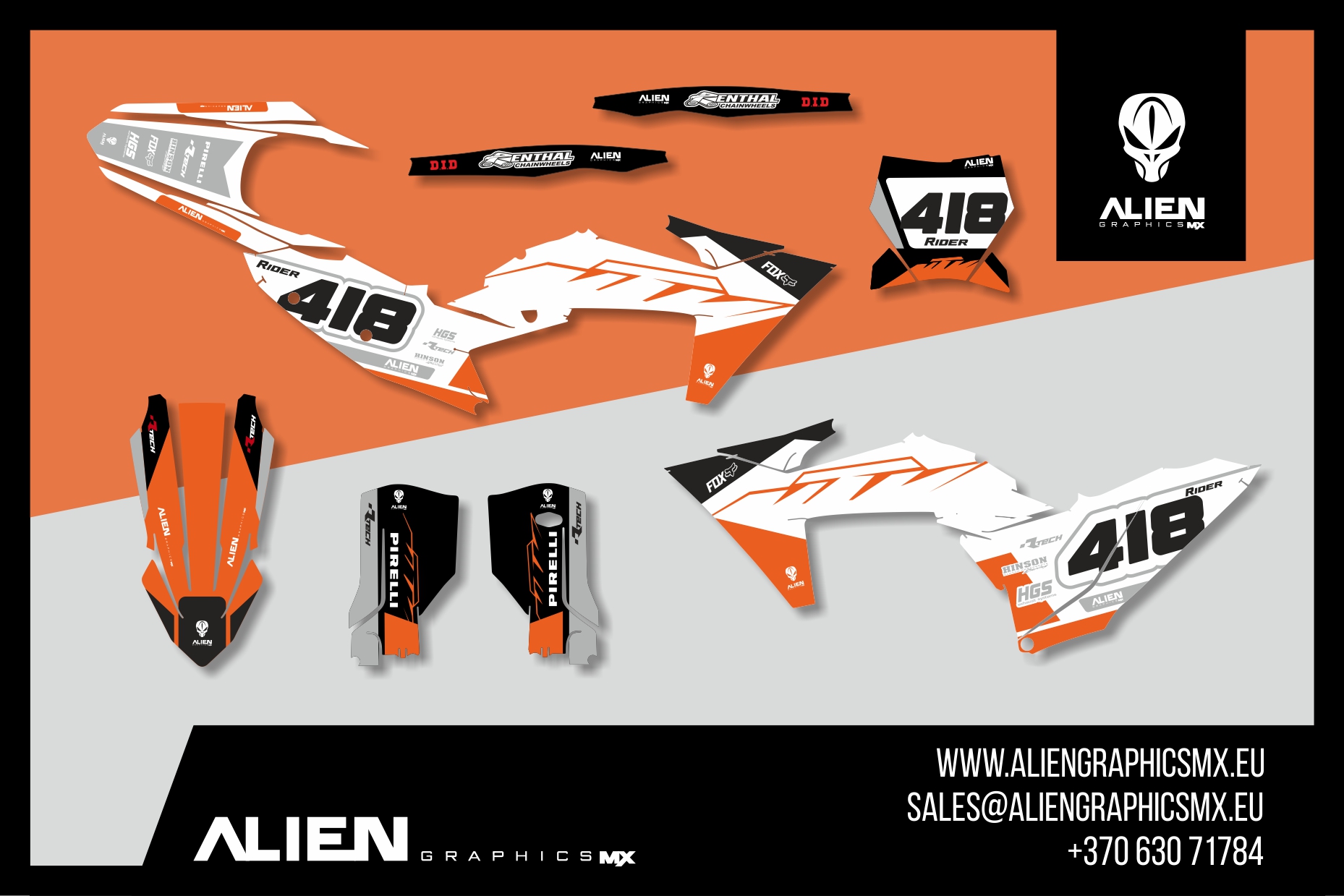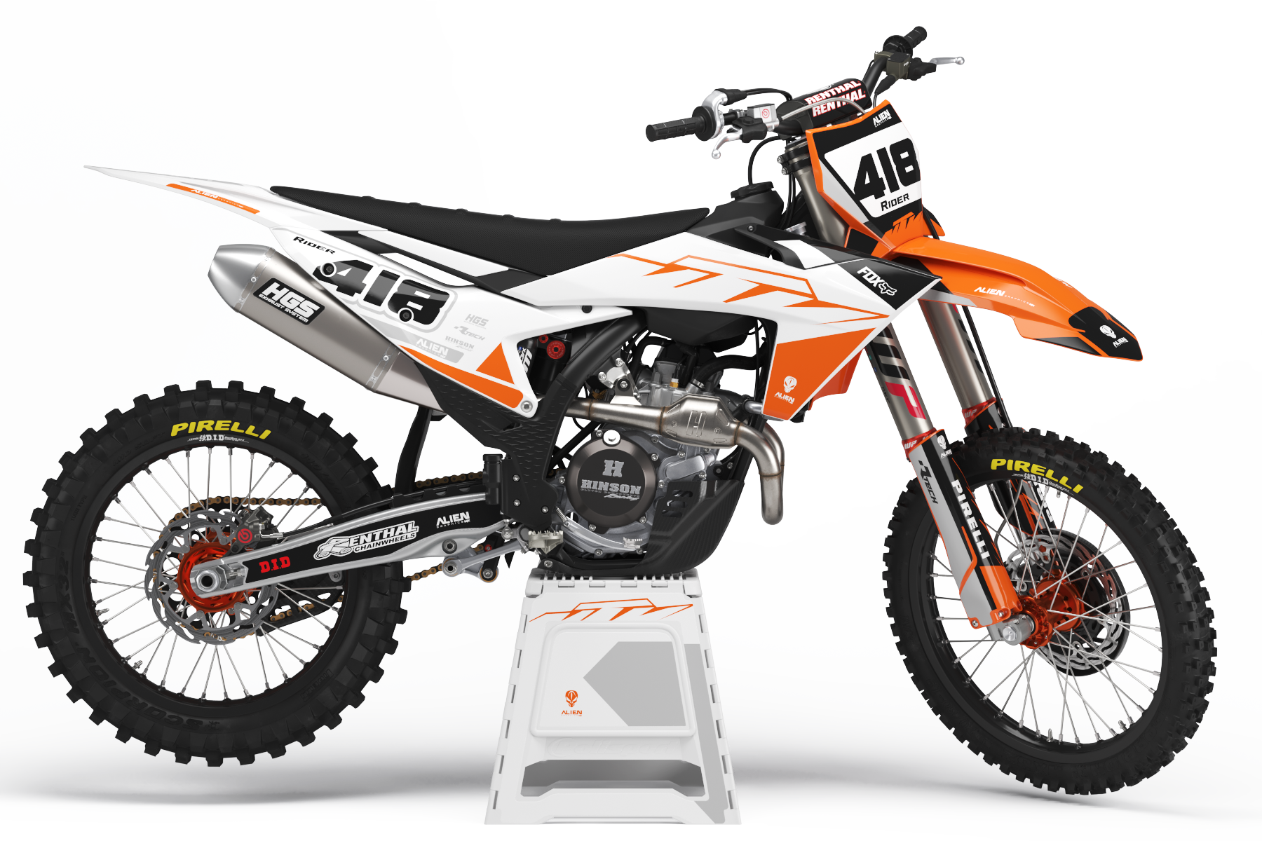 Premium motorcycle Graphic Kit (Decal Kit, Sticker Kit) for the KTM Dirt Bikes – manufactured from extremely durable, long-lasting materials and printed using professional-grade equipment for vivid, high-resolution colors.