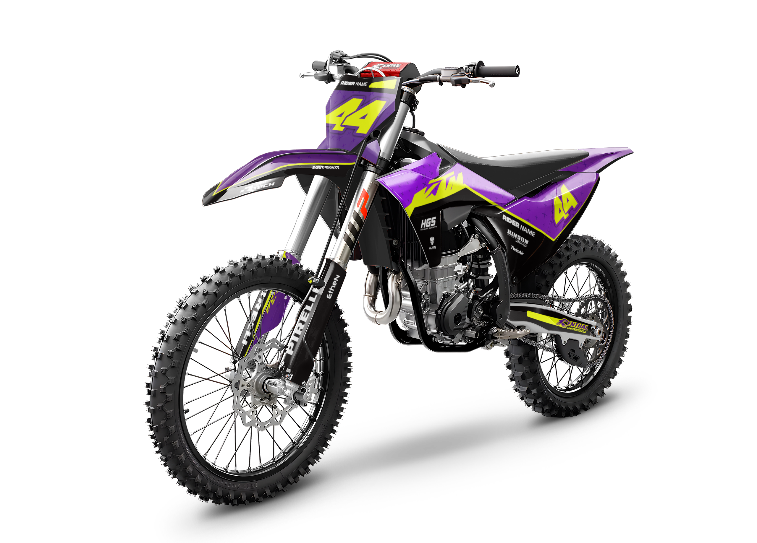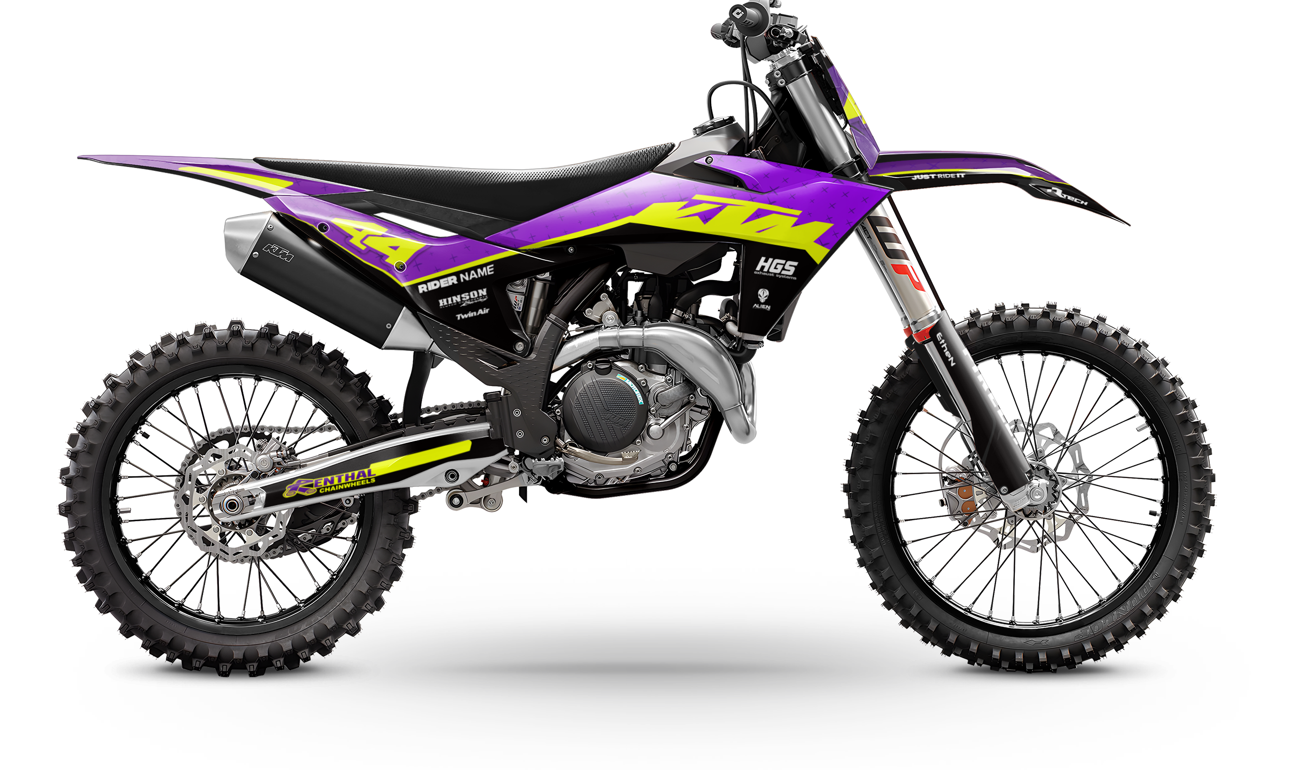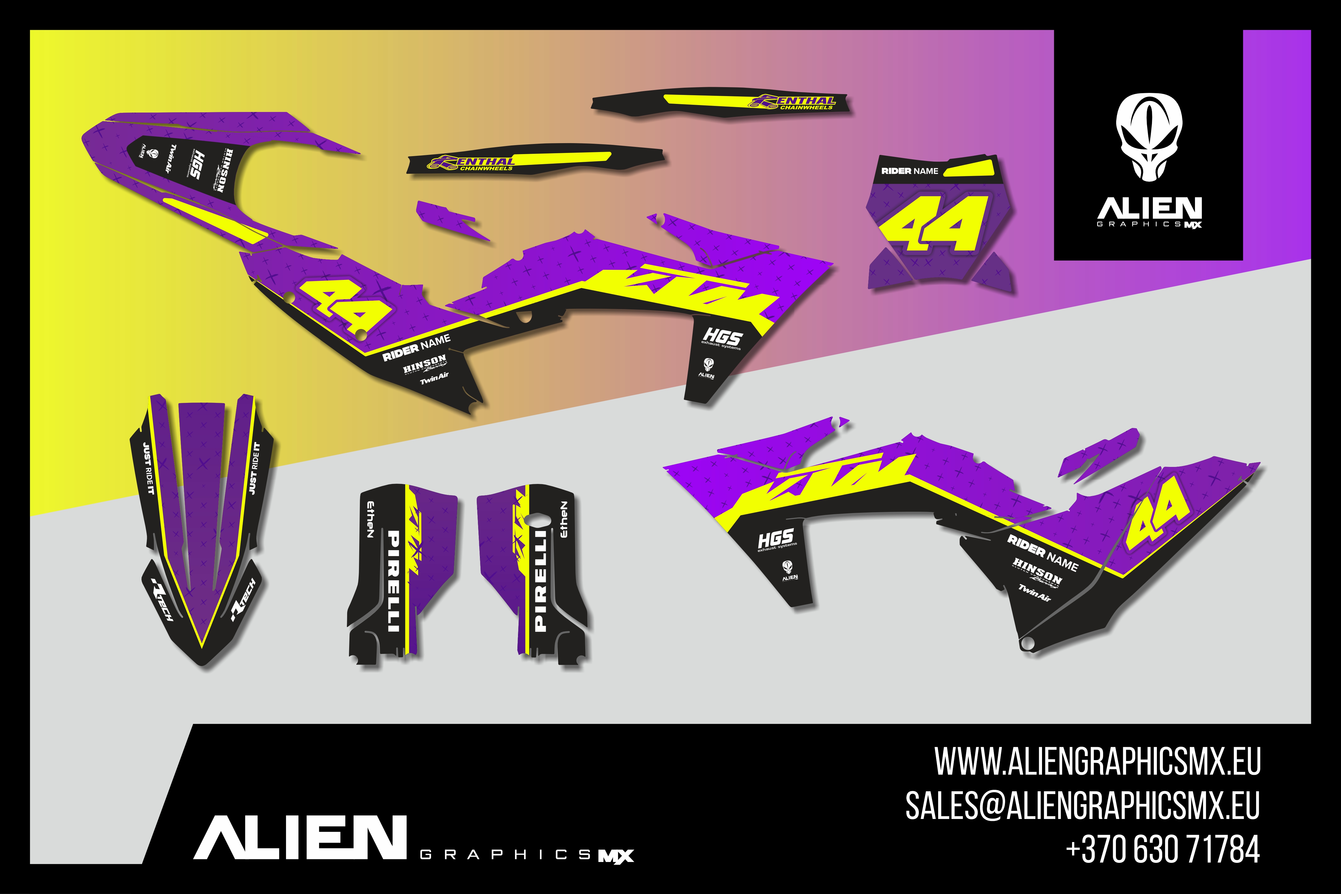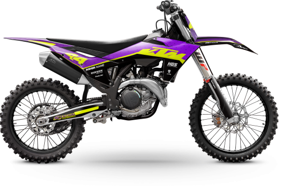 Premium motorcycle Graphic Kit (Decal Kit, Sticker Kit) for the KTM Dirt Bikes – manufactured from extremely durable, long-lasting materials and printed using professional-grade equipment for vivid, high-resolution colors.