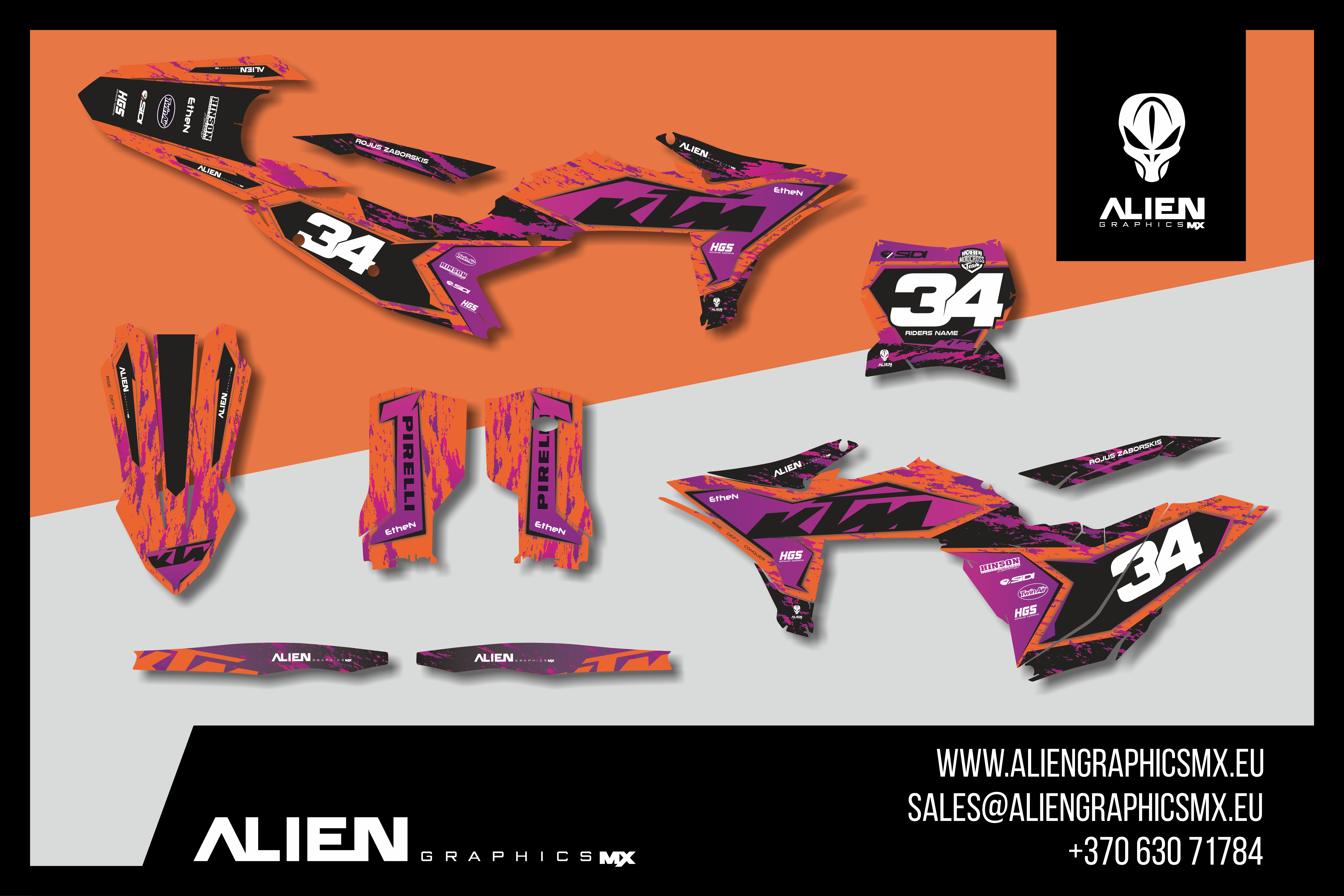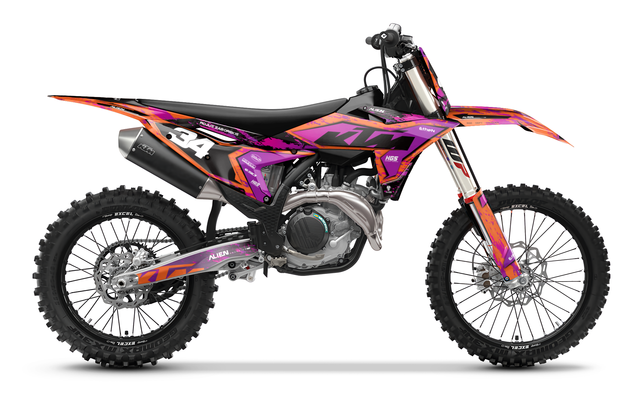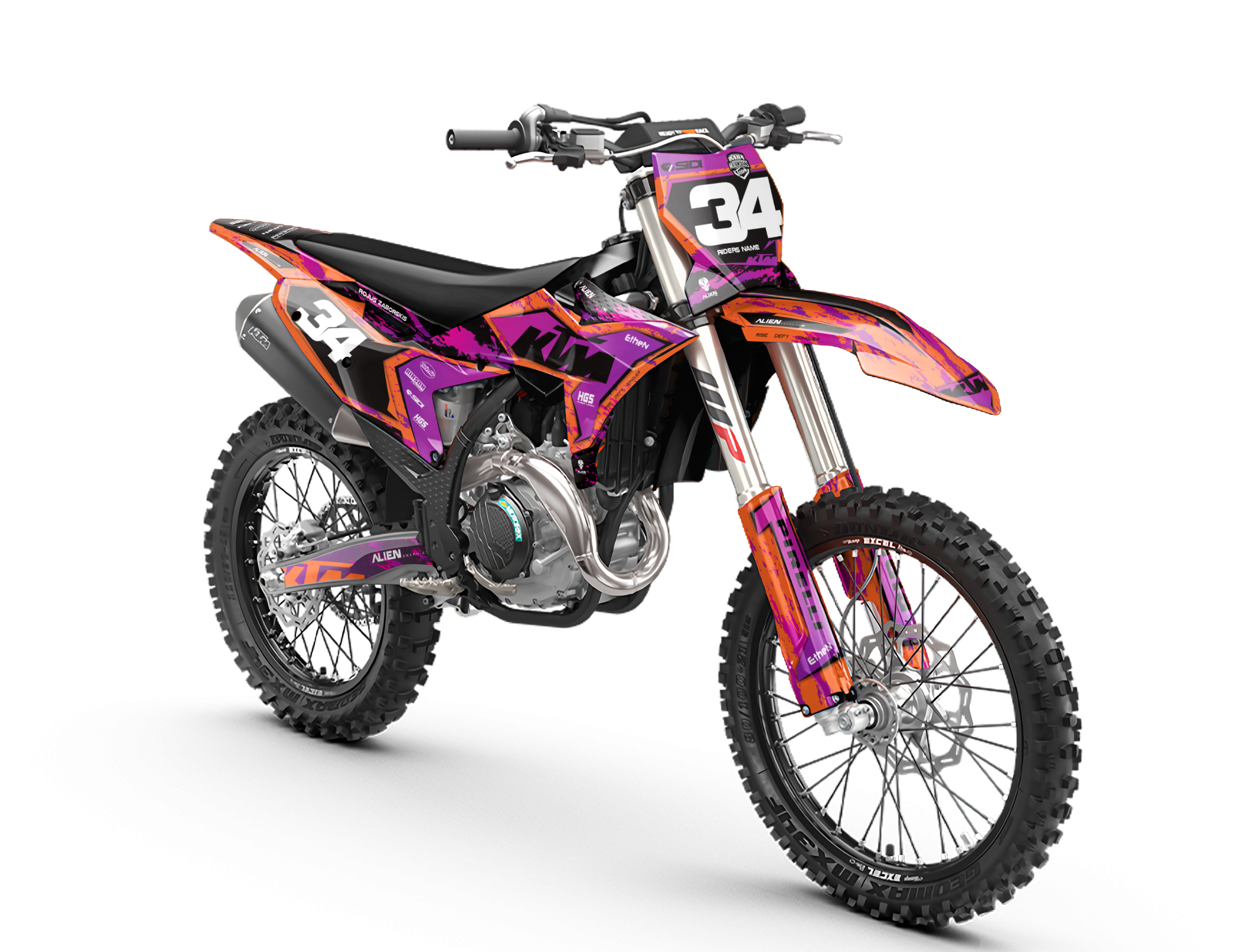 Premium motorcycle Graphic Kit (Decal Kit, Sticker Kit) for the KTM Dirt Bikes – manufactured from extremely durable, long-lasting materials and printed using professional-grade equipment for vivid, high-resolution colors.