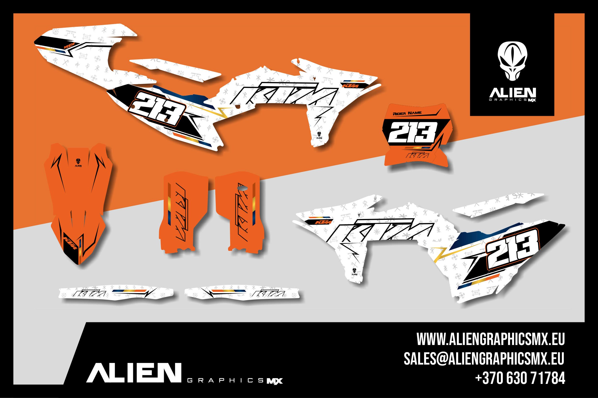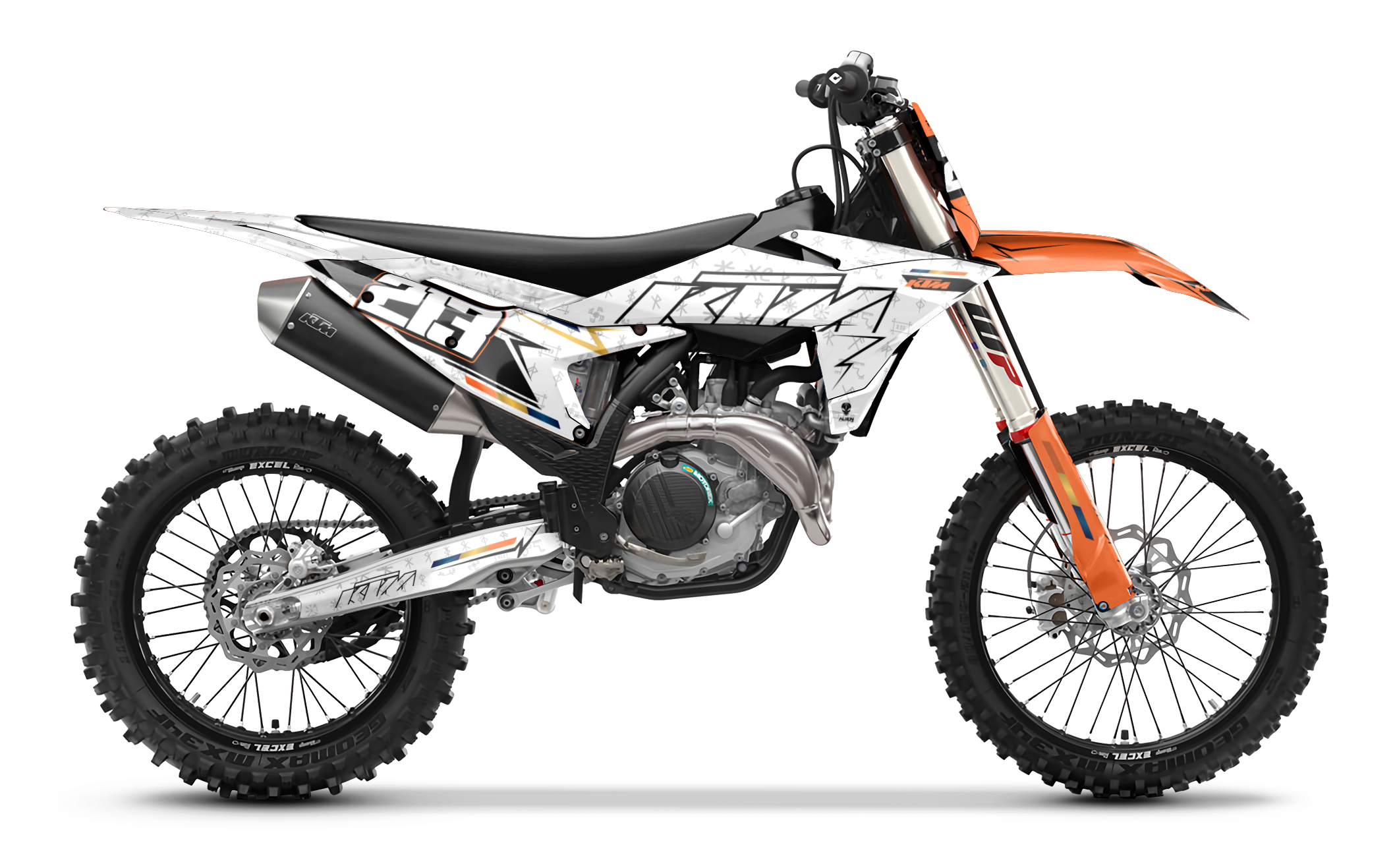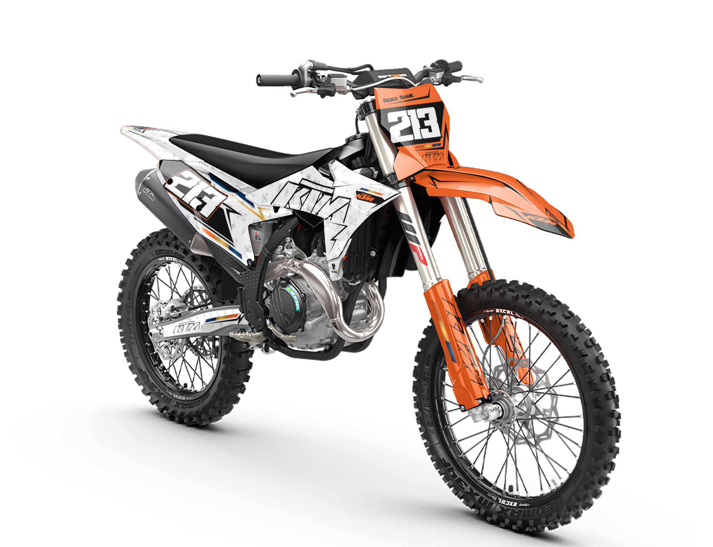 Premium motorcycle Graphic Kit (Decal Kit, Sticker Kit) for the KTM Dirt Bikes – manufactured from extremely durable, long-lasting materials and printed using professional-grade equipment for vivid, high-resolution colors.