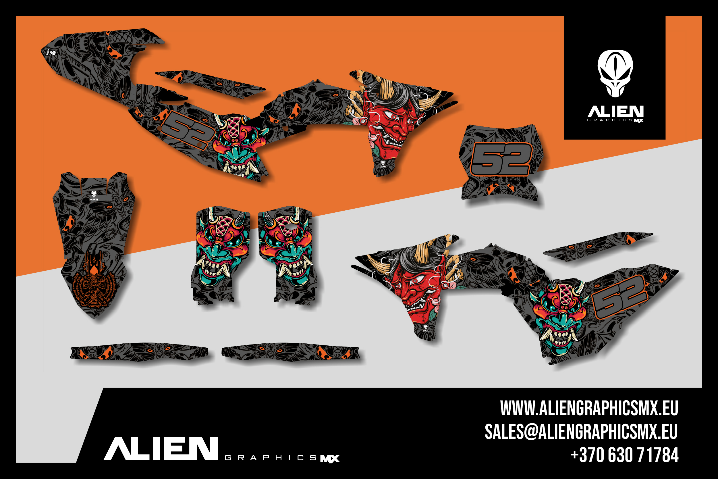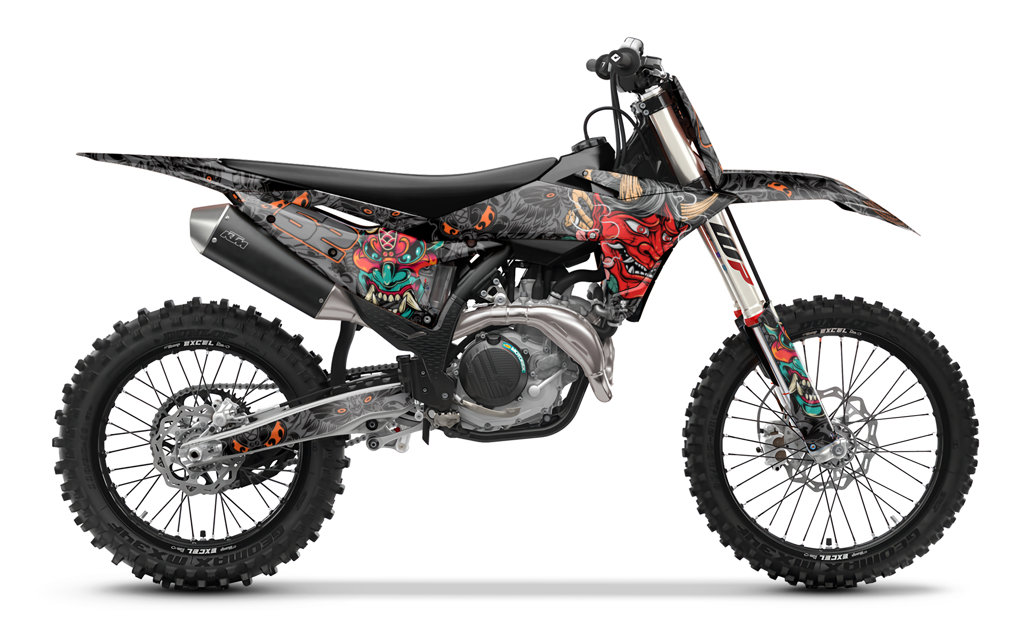 Premium motorcycle Graphic Kit (Decal Kit, Sticker Kit) for the KTM Dirt Bikes – manufactured from extremely durable, long-lasting materials and printed using professional-grade equipment for vivid, high-resolution colors.