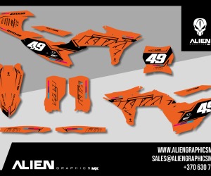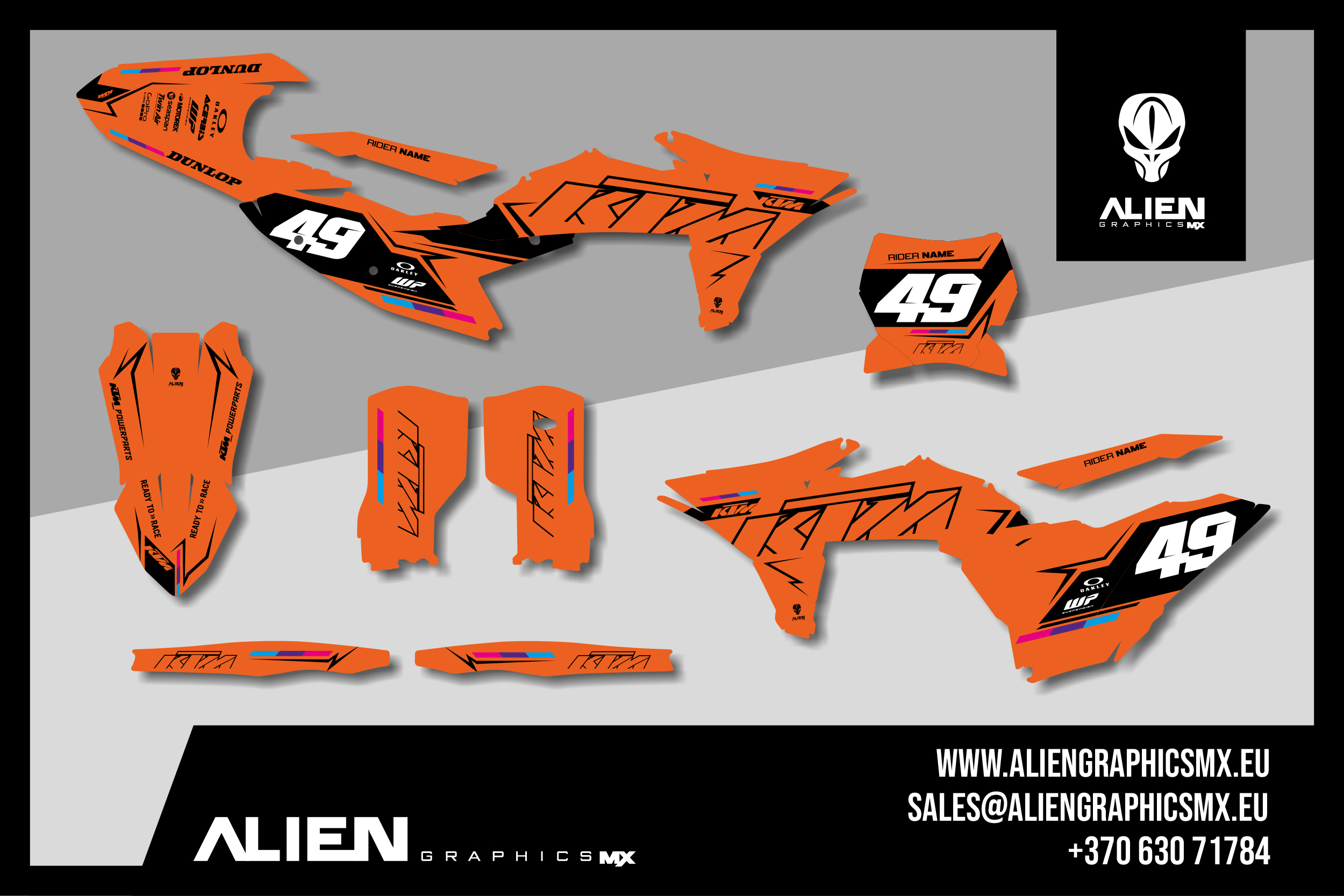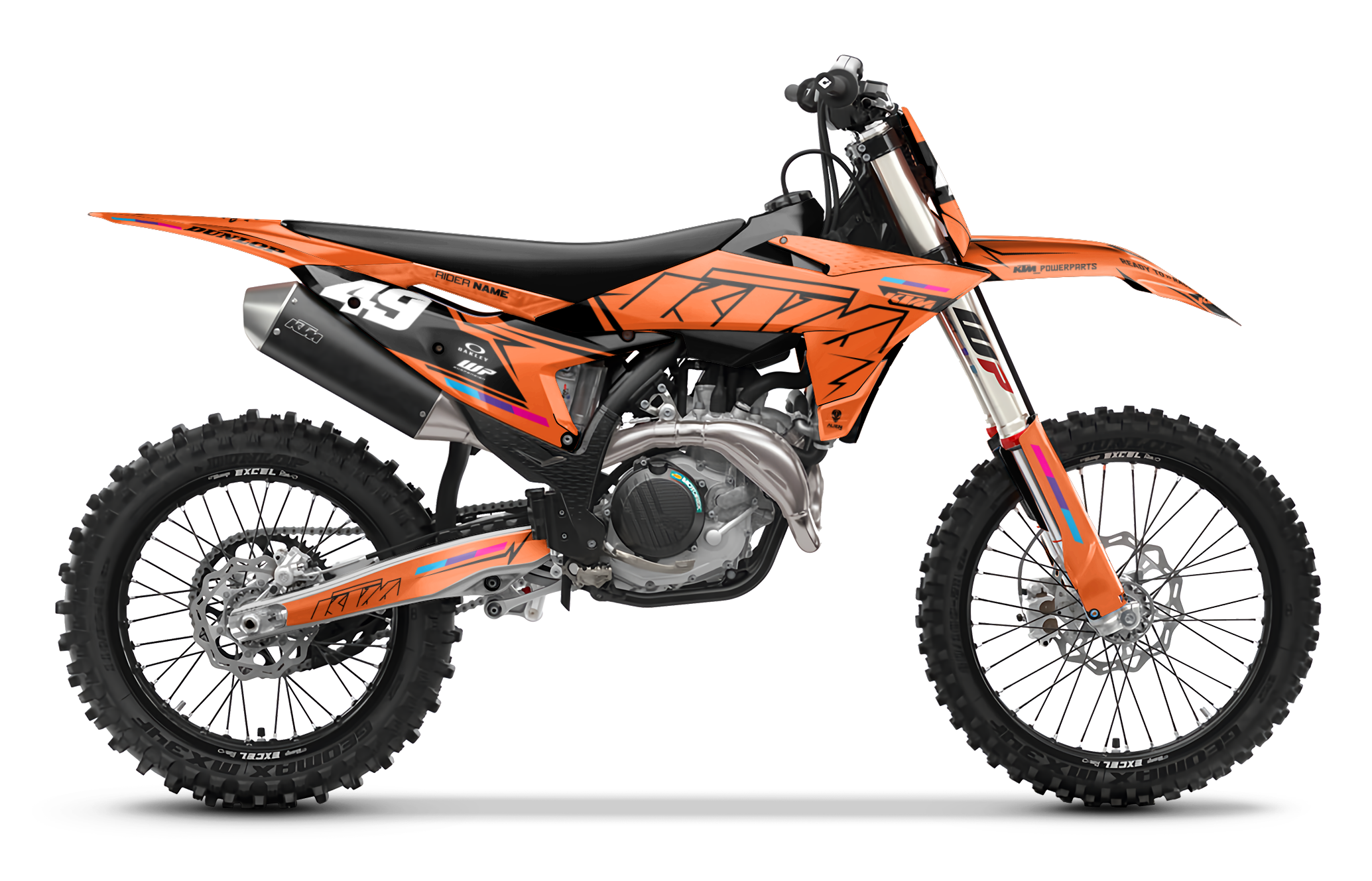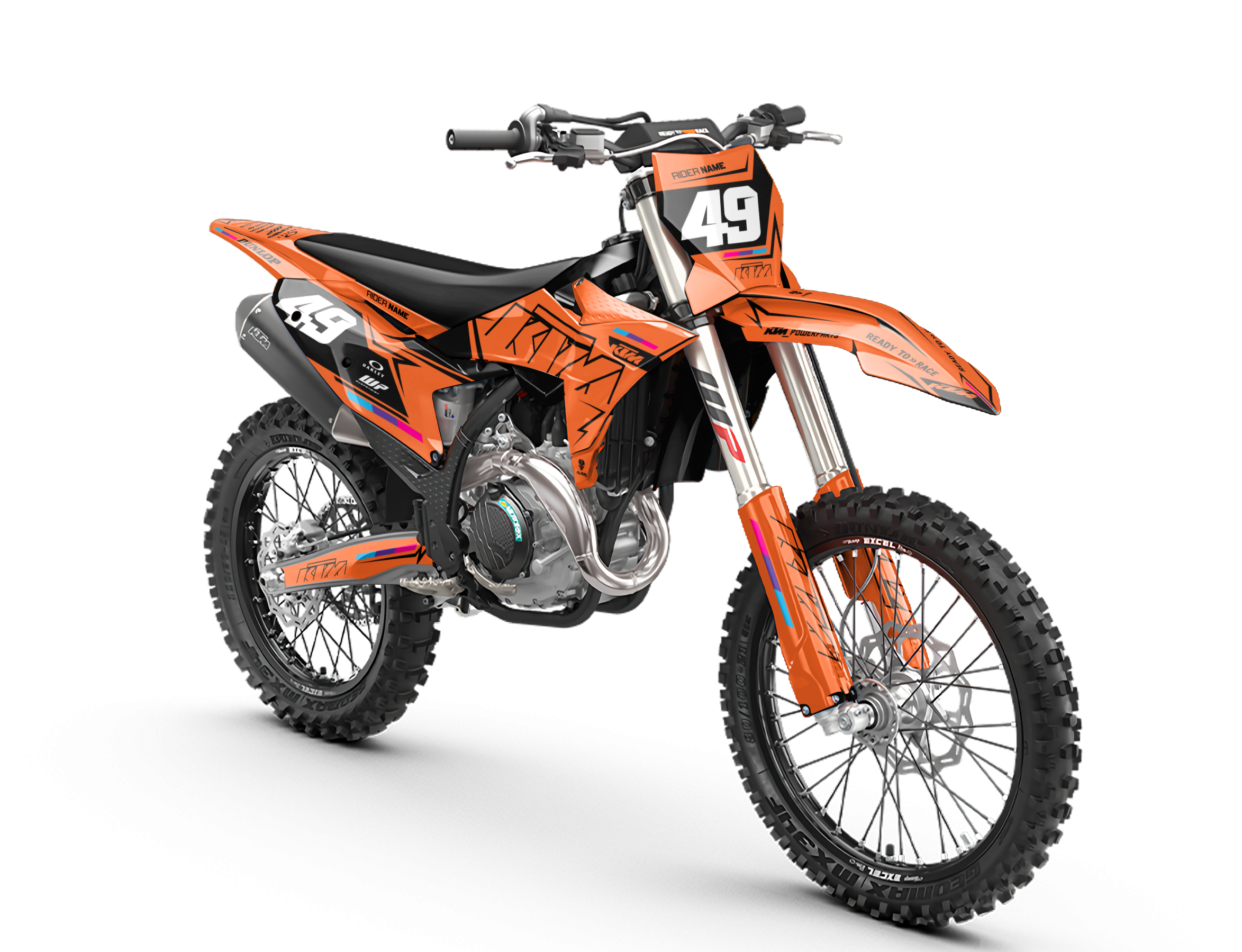 Premium motorcycle Graphic Kit (Decal Kit, Sticker Kit) for the KTM Dirt Bikes – manufactured from extremely durable, long-lasting materials and printed using professional-grade equipment for vivid, high-resolution colors.