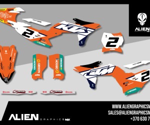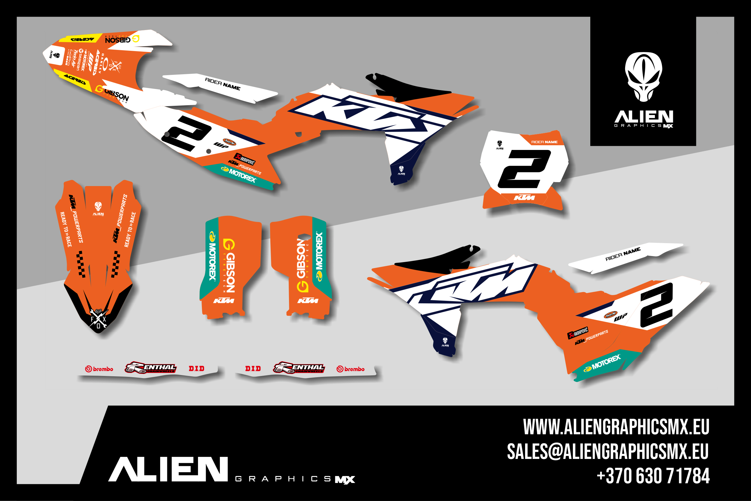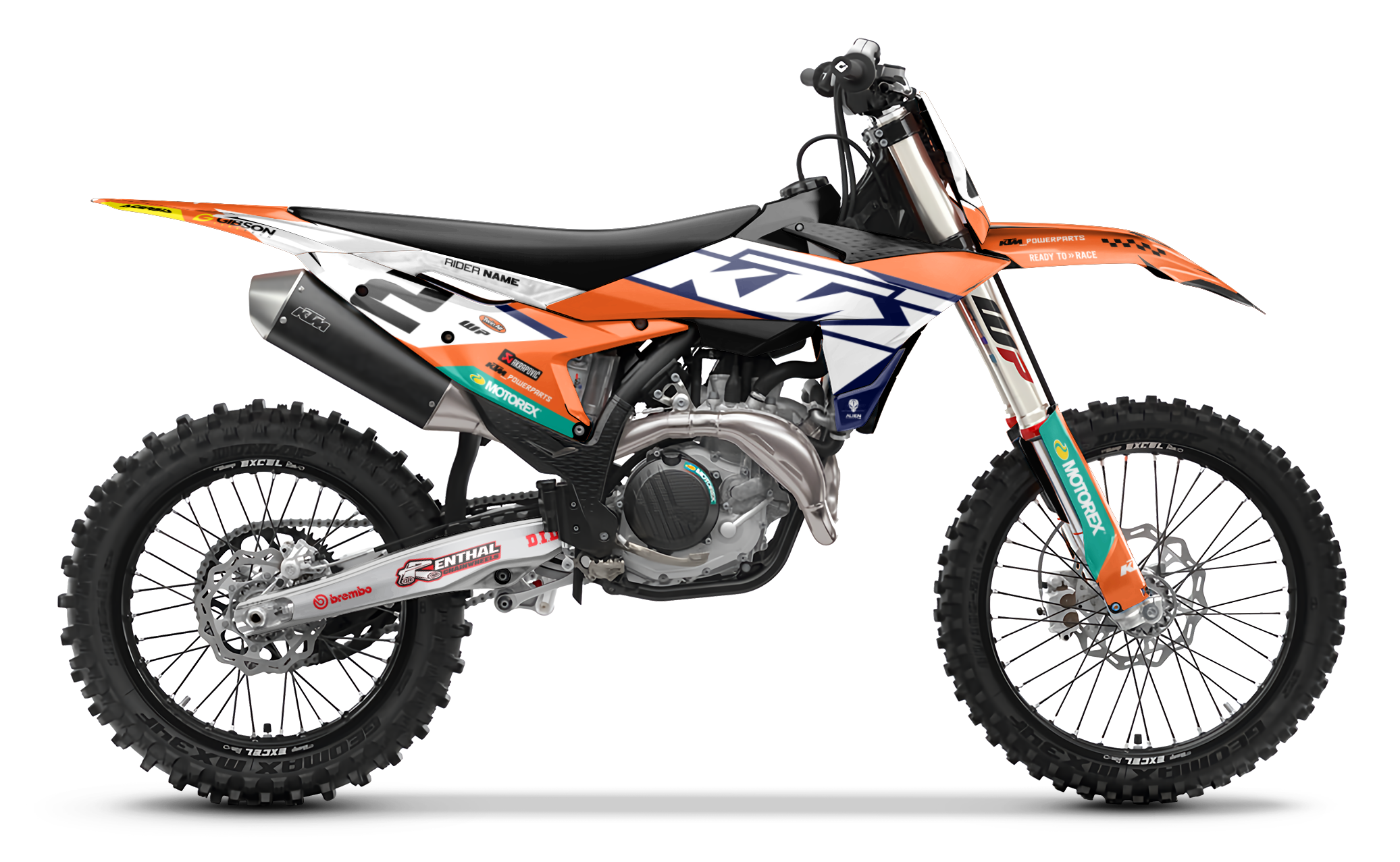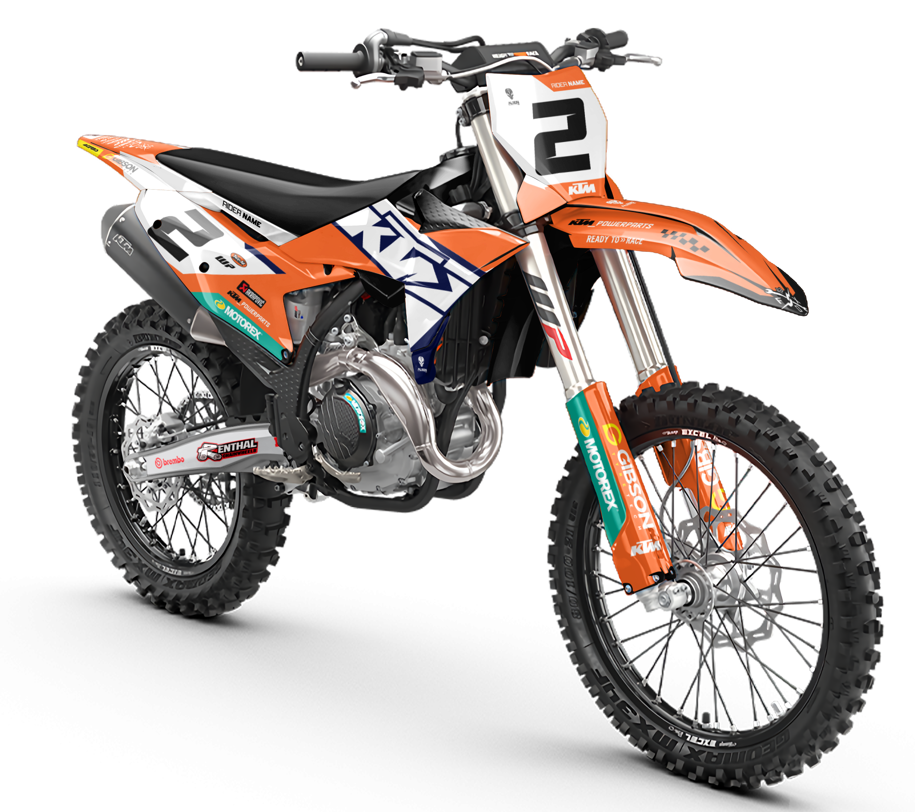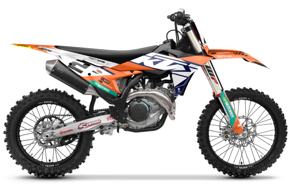 Premium motorcycle Graphic Kit (Decal Kit, Sticker Kit) for the KTM Dirt Bikes – manufactured from extremely durable, long-lasting materials and printed using professional-grade equipment for vivid, high-resolution colors.