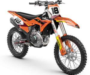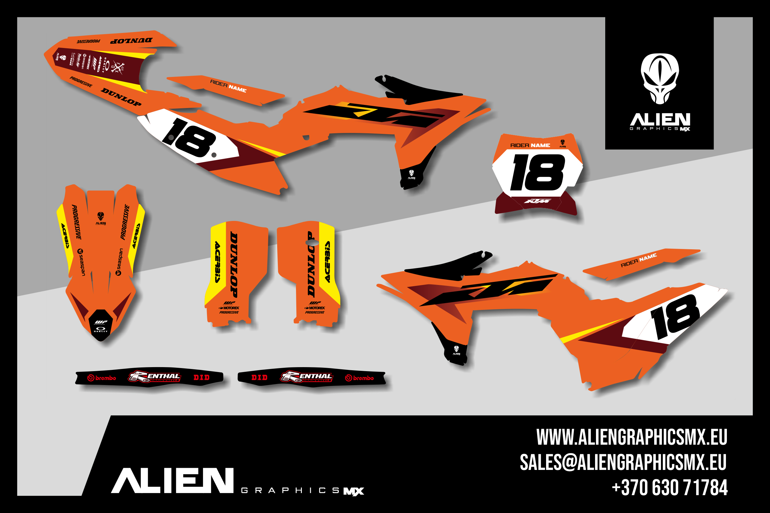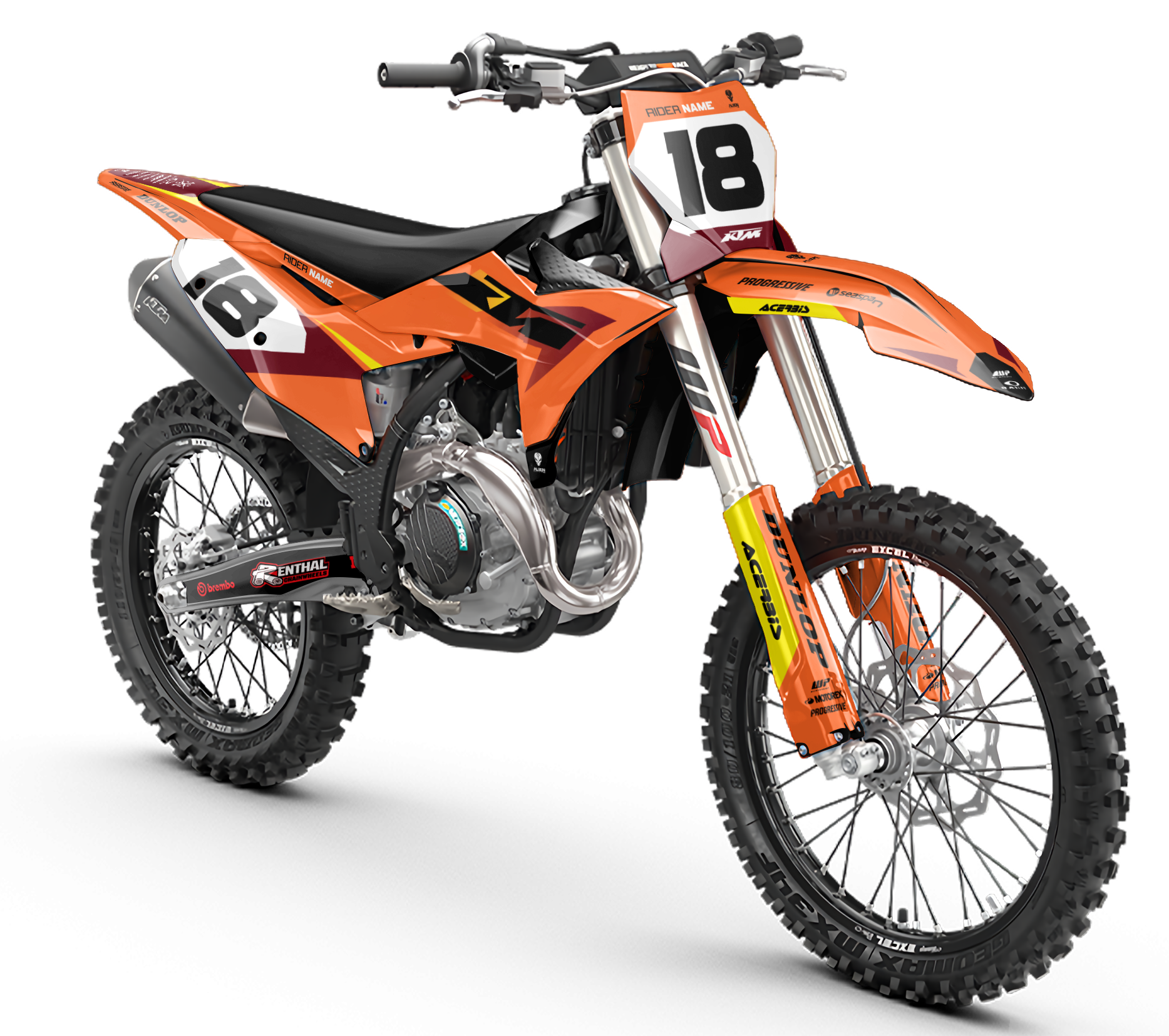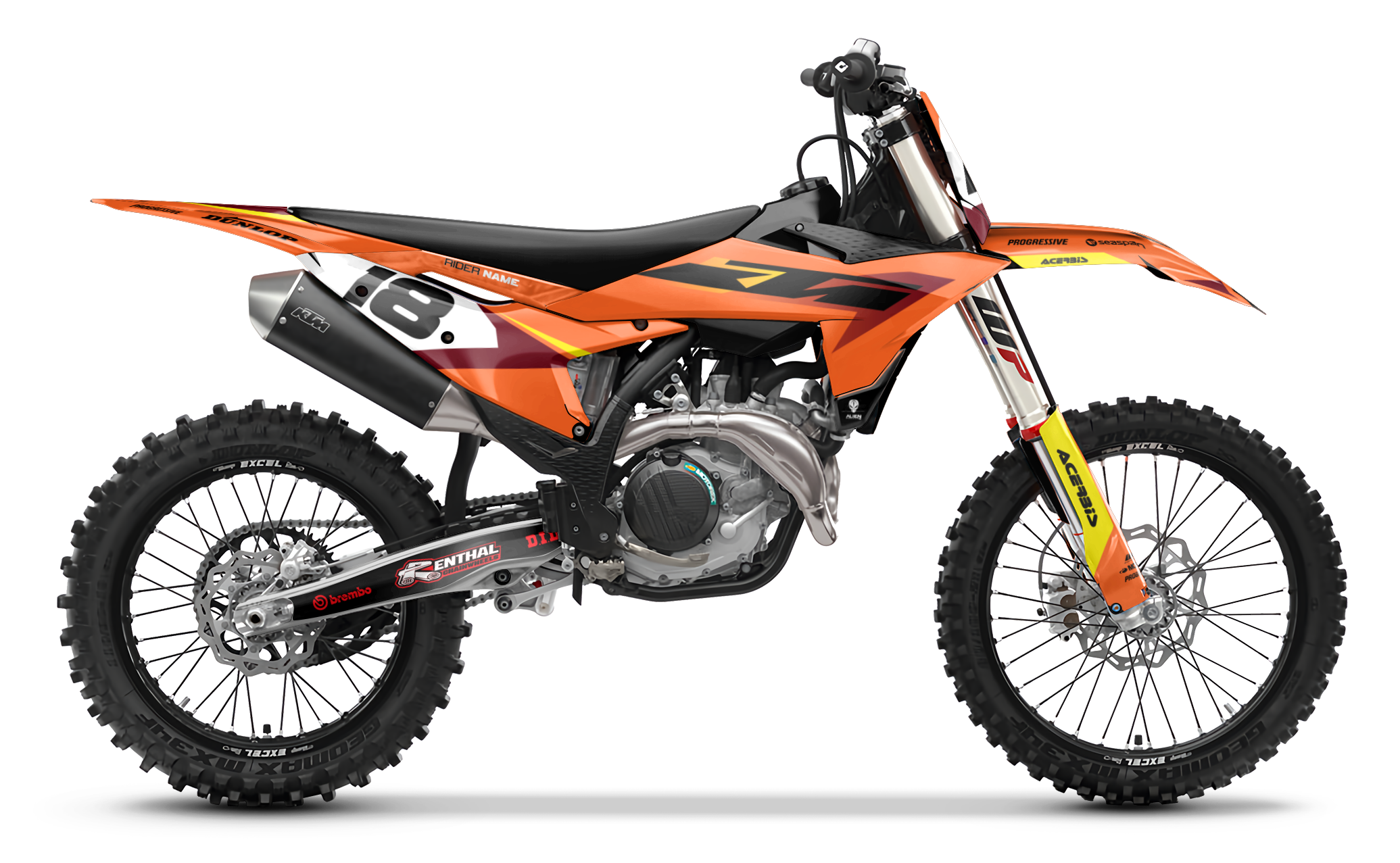 Premium motorcycle Graphic Kit (Decal Kit, Sticker Kit) for the KTM Dirt Bikes – manufactured from extremely durable, long-lasting materials and printed using professional-grade equipment for vivid, high-resolution colors.