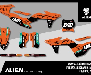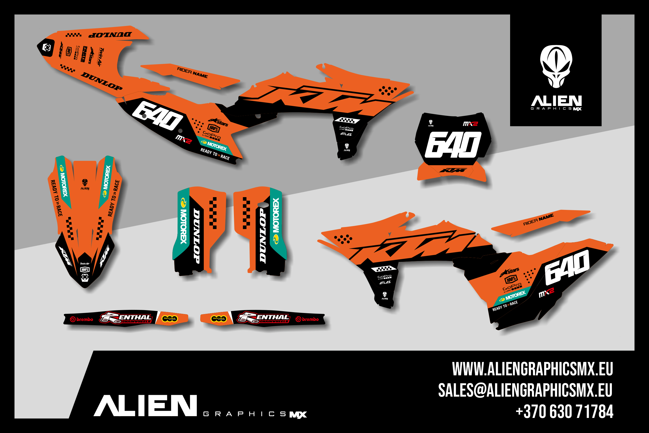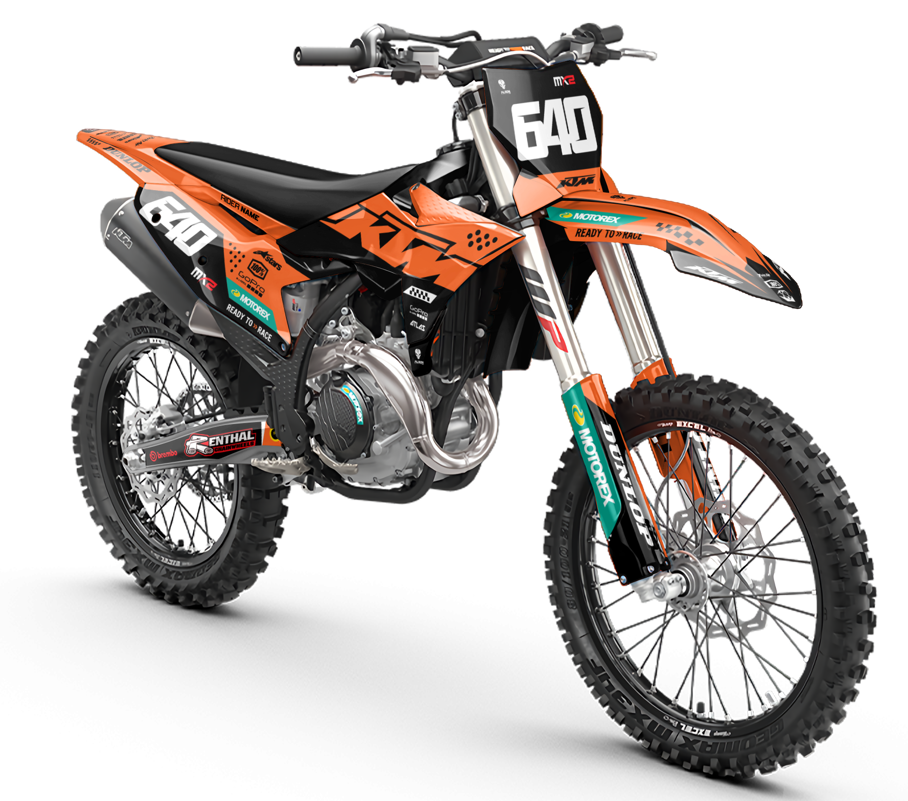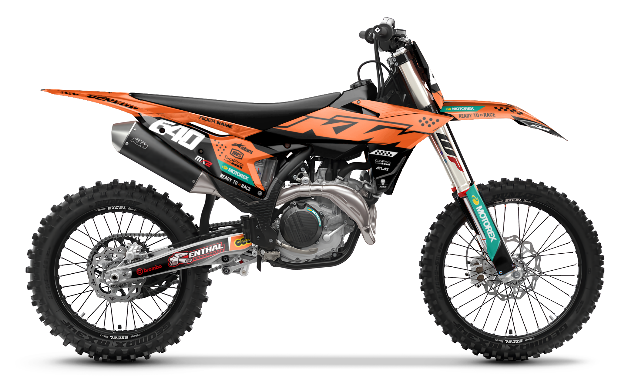 Premium motorcycle Graphic Kit (Decal Kit, Sticker Kit) for the KTM Dirt Bikes – manufactured from extremely durable, long-lasting materials and printed using professional-grade equipment for vivid, high-resolution colors.