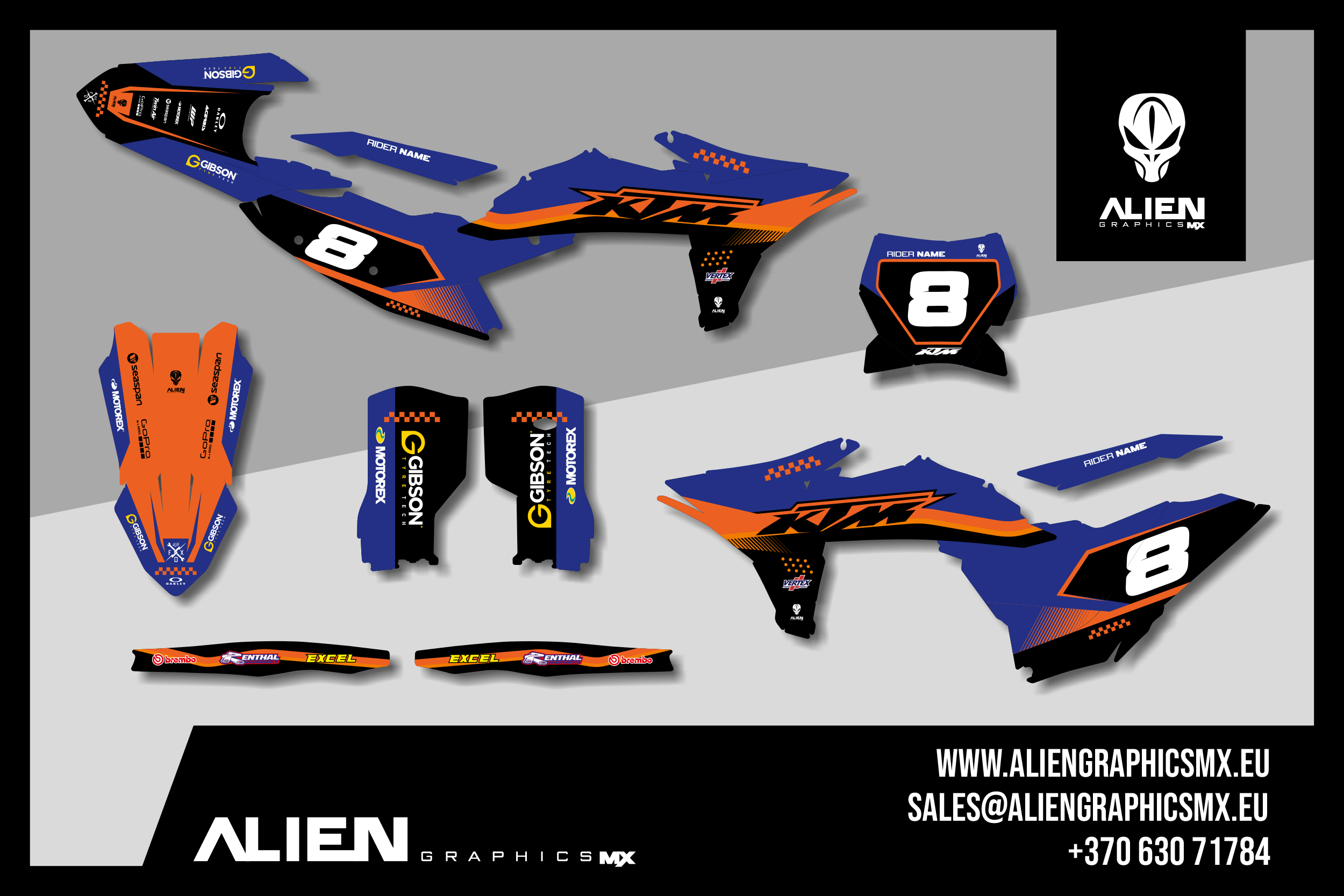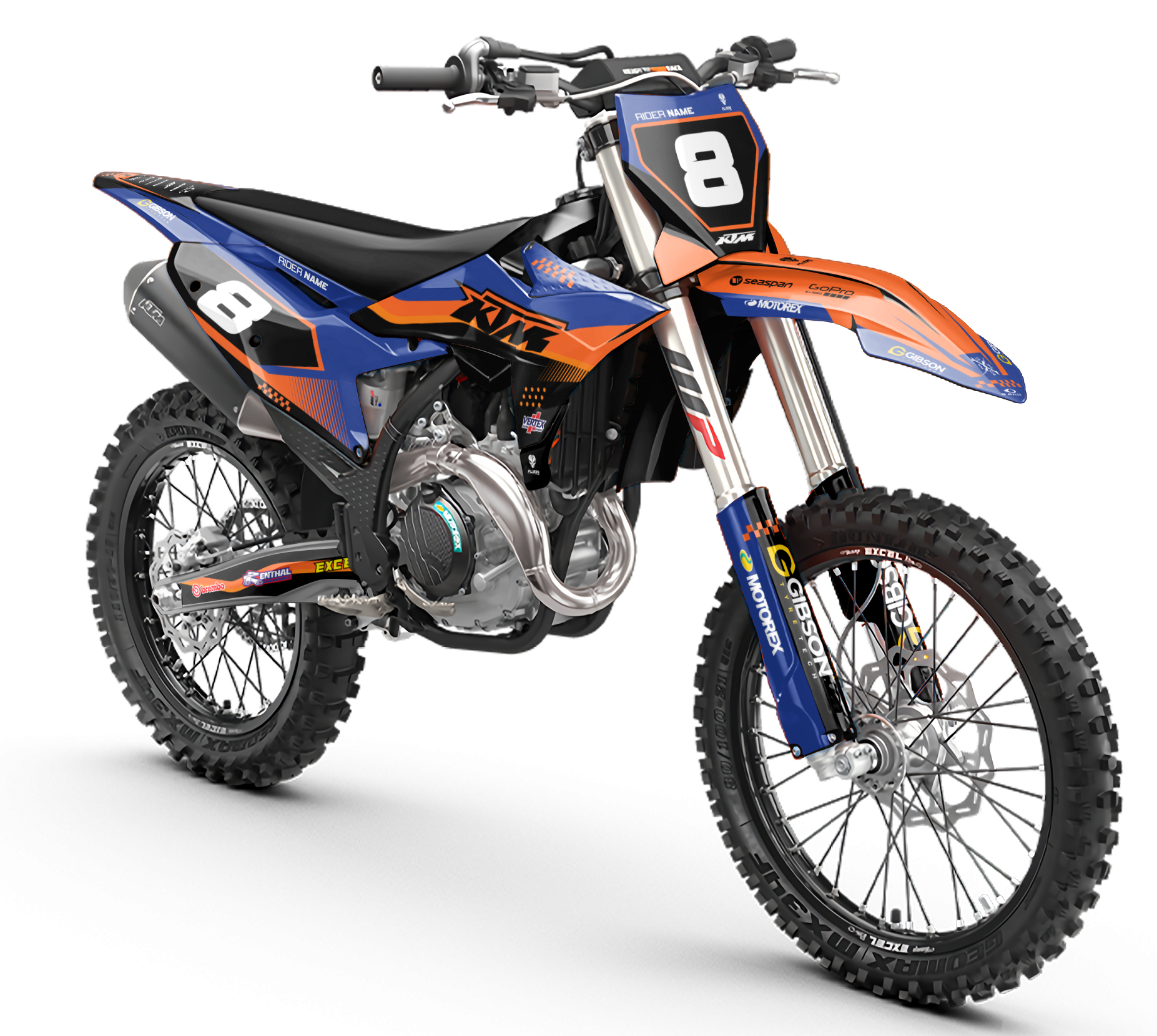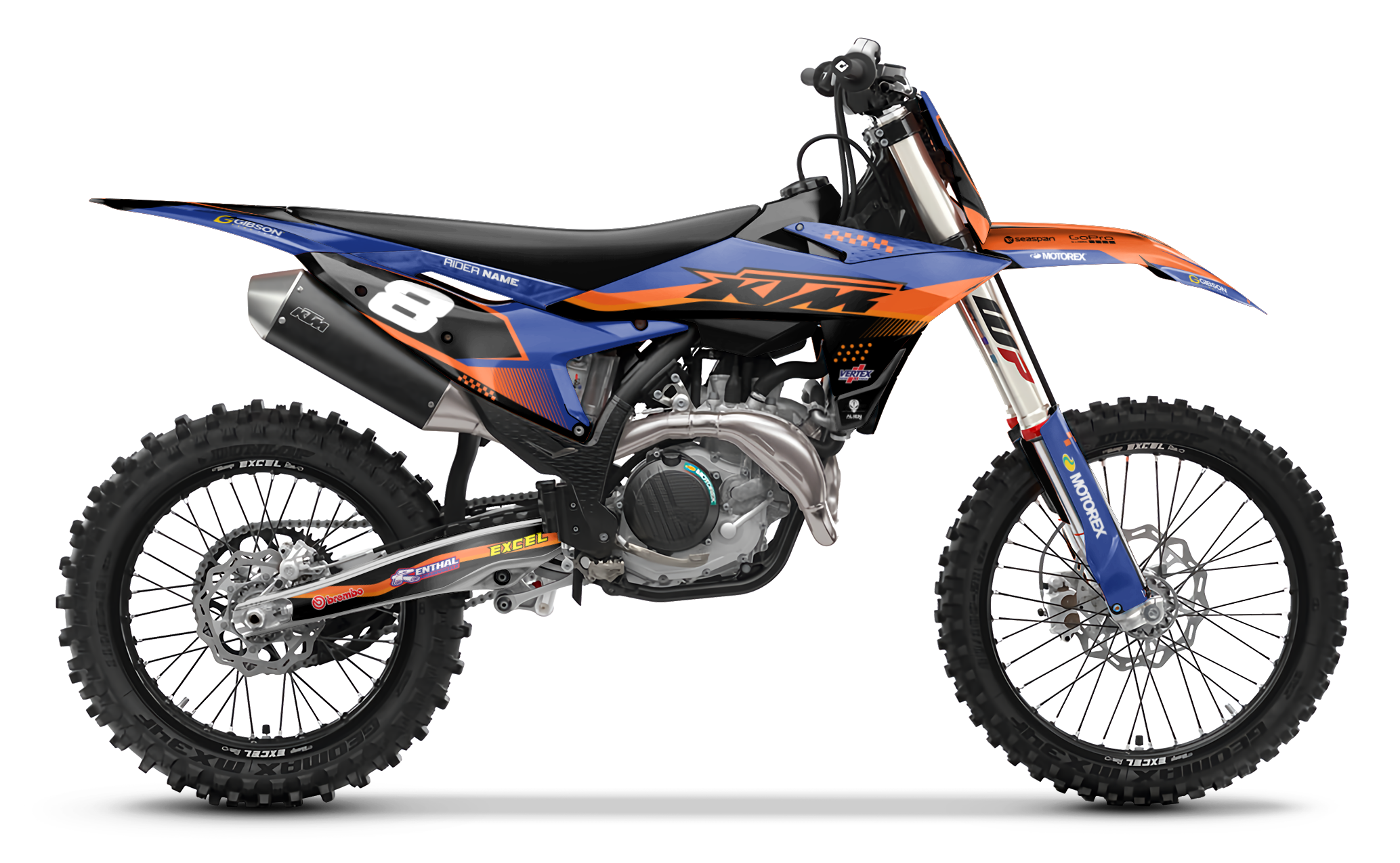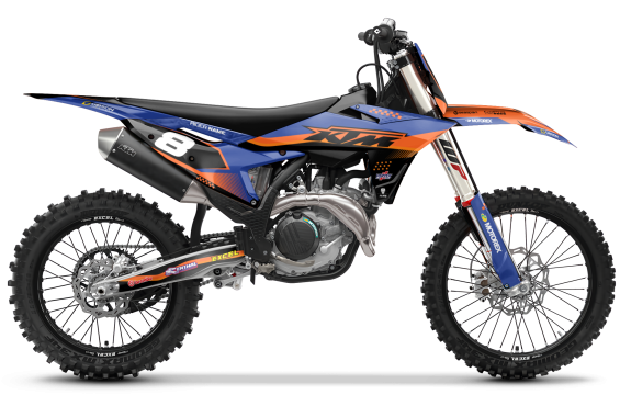 Premium motorcycle Graphic Kit (Decal Kit, Sticker Kit) for the KTM Dirt Bikes – manufactured from extremely durable, long-lasting materials and printed using professional-grade equipment for vivid, high-resolution colors.