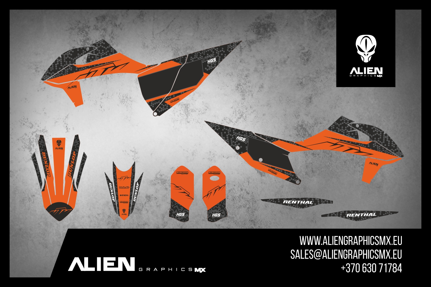 Premium motorcycle Graphic Kit (Decal Kit, Sticker Kit) for the KTM Dirt Bikes – manufactured from extremely durable, long-lasting materials and printed using professional-grade equipment for vivid, high-resolution colors.