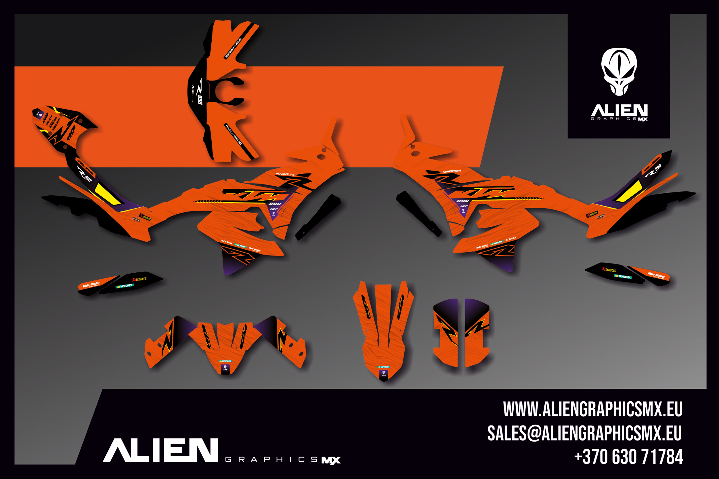 Premium Motorrad-Dekor-Kit (Sticker-Set, Grafik-Kit) für die KTM 790 - 890 ADVENTURE-R 2023-2026 – hergestellt aus extrem langlebigen und widerstandsfähigen Materialien, gedruckt mit professioneller Ausrüstung für kräftige, hochauflösende Farben.
