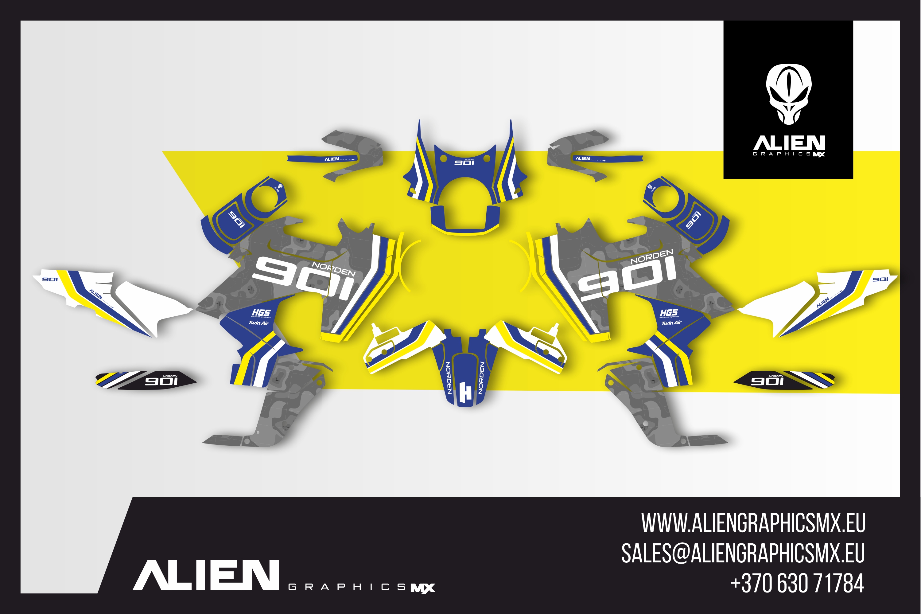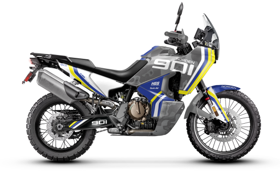 Premium klasės motociklo lipdukų rinkinys (grafikų komplektas) HUSQVARNA NORDEN 901 modeliui – gaminamas iš aukštos kokybės medžiagų ir spausdinamas profesionalia įranga ryškiomis, ilgai išliekančiomis spalvomis.
